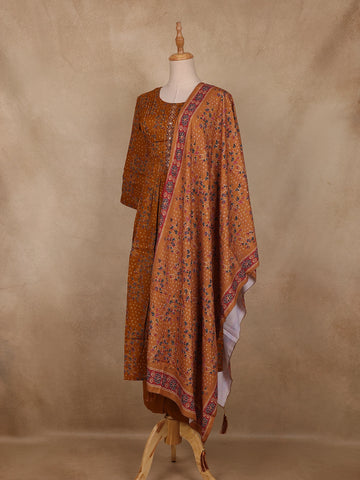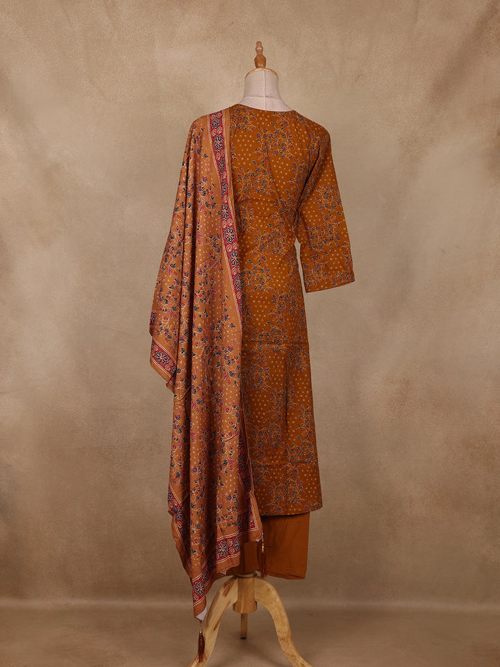 Mustard Yellow Floral Printed Cotton Salwar Suit with Dupatta