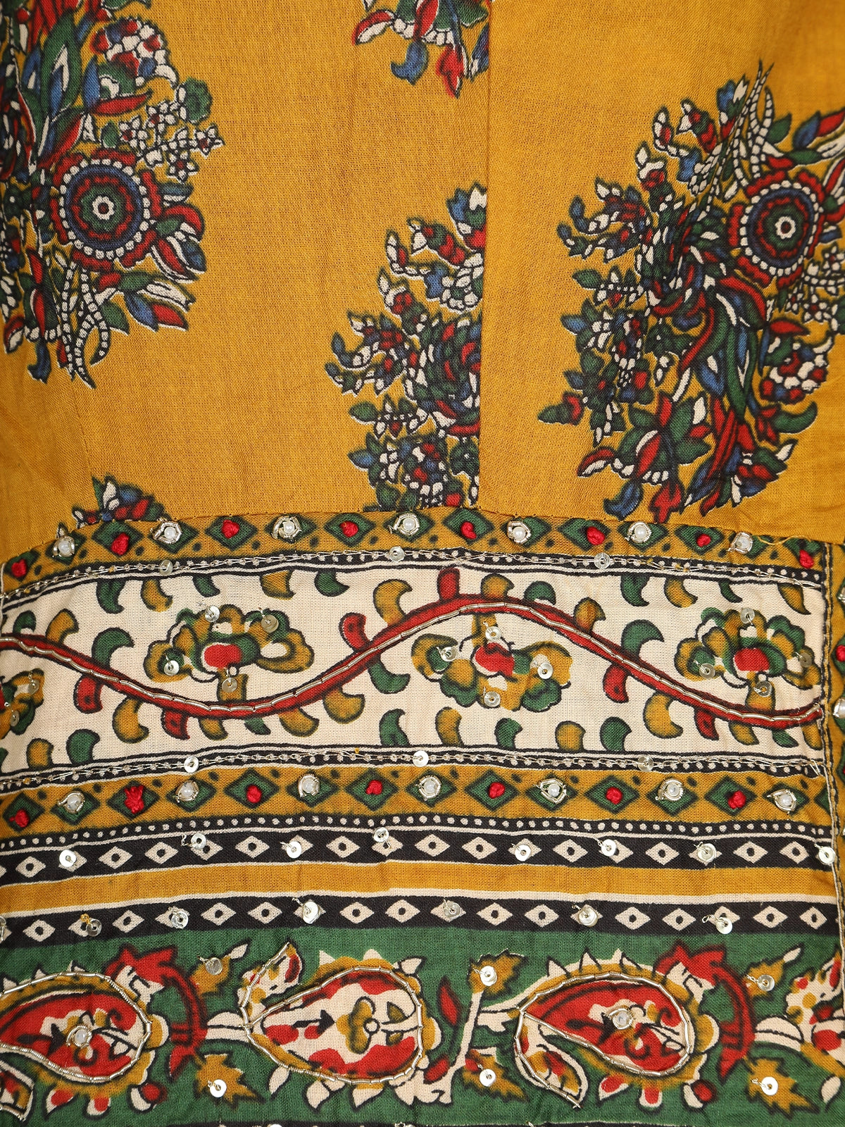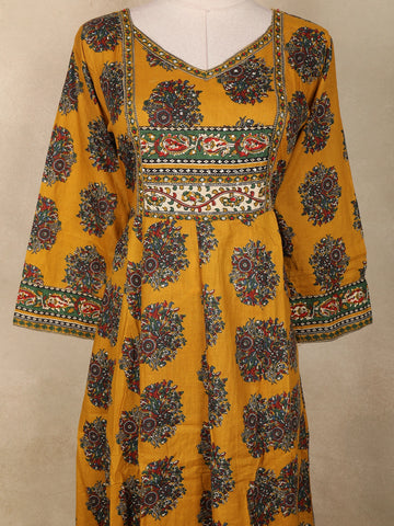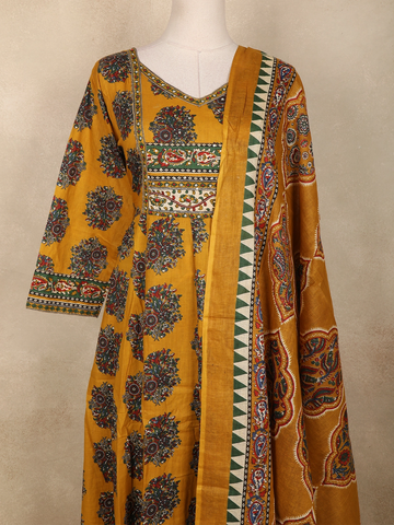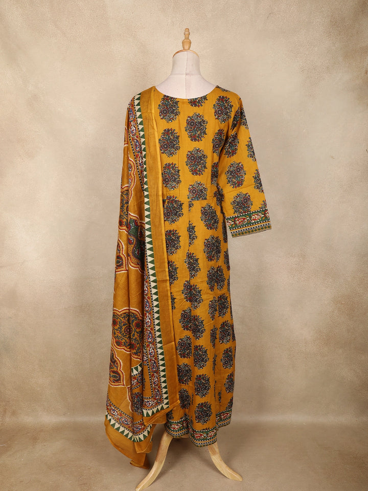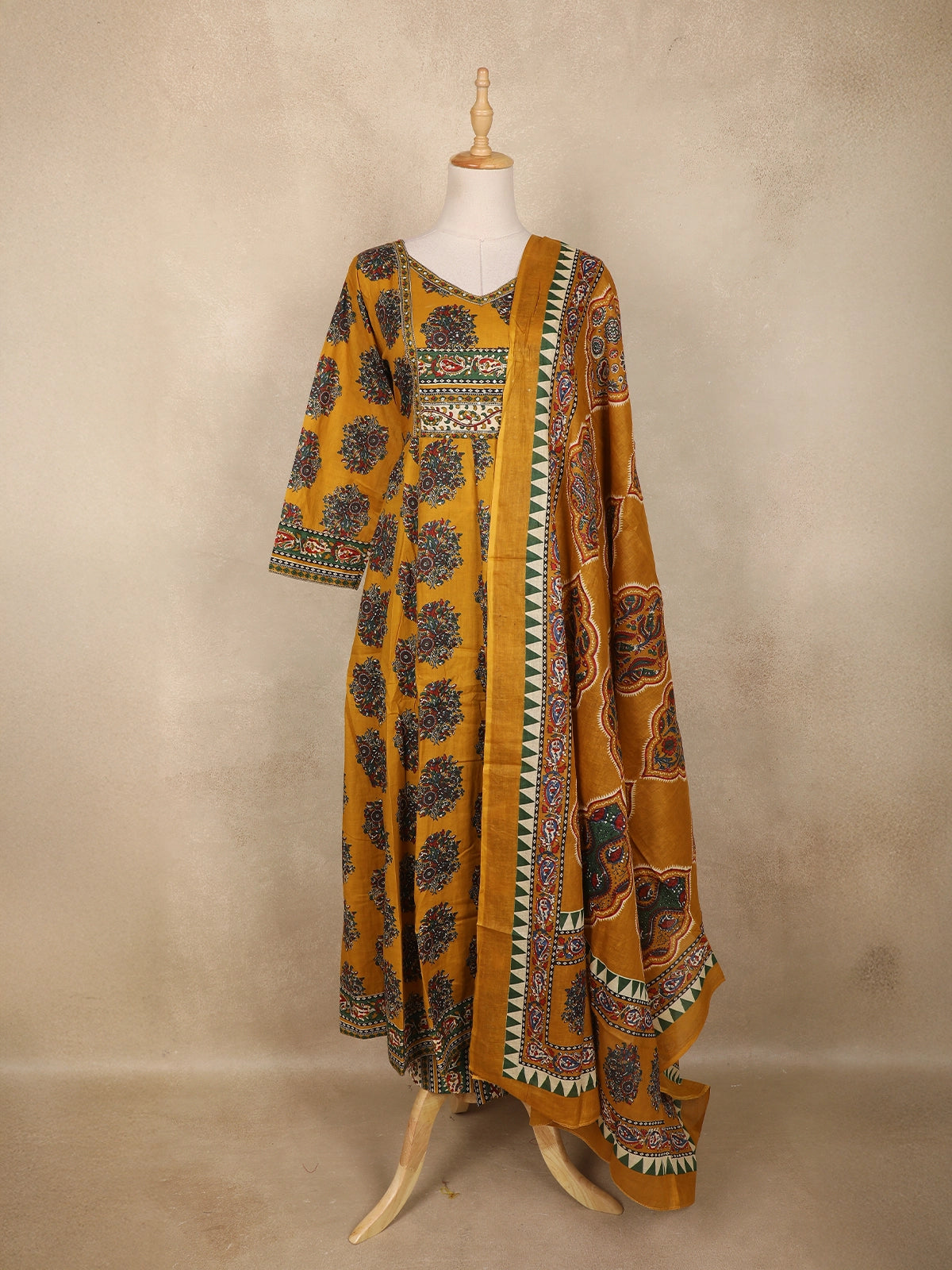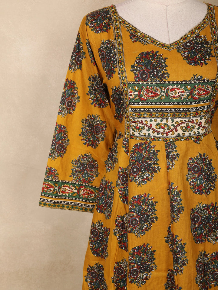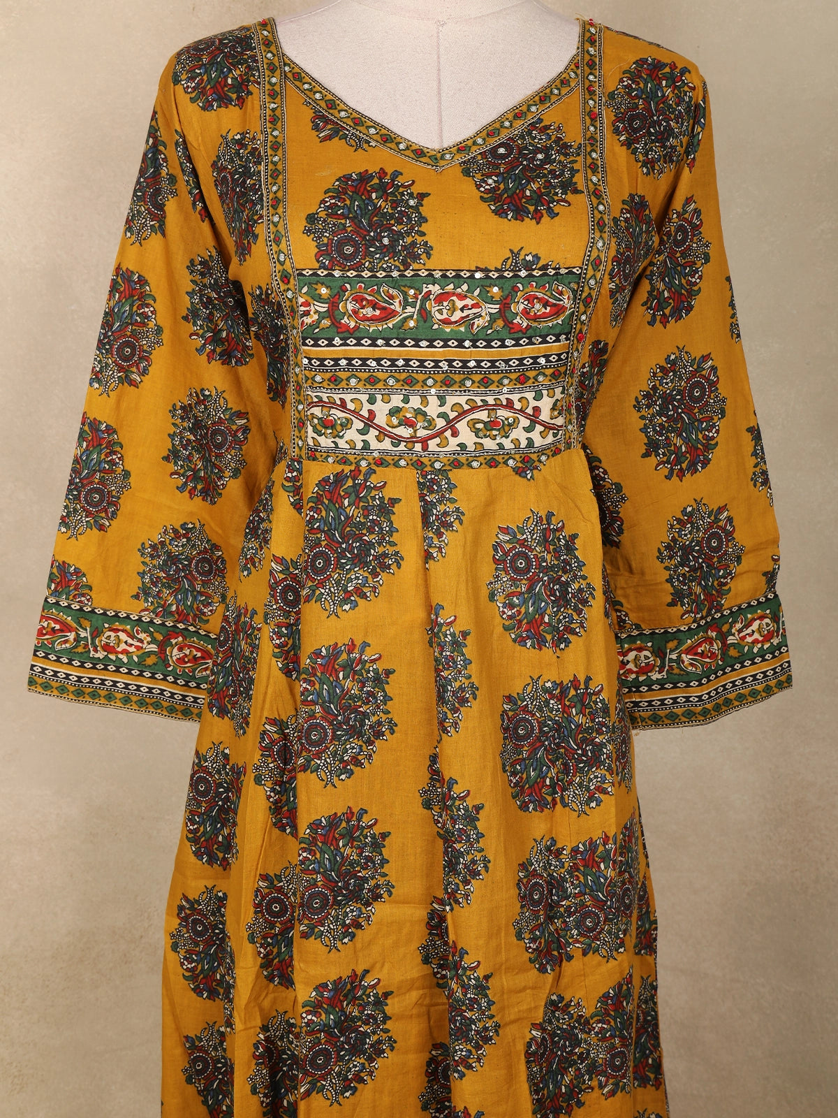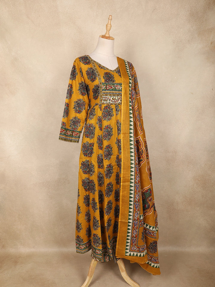 Mustard Yellow Floral Printed Design Cotton Anarkali Salwar Suit