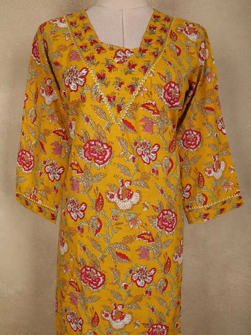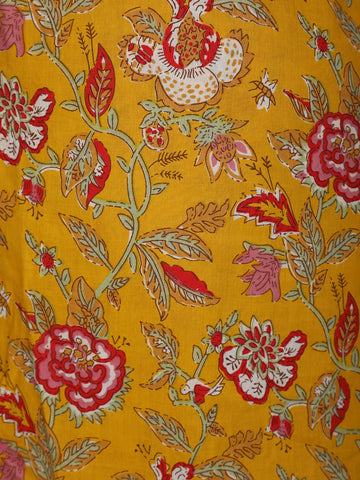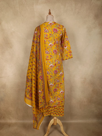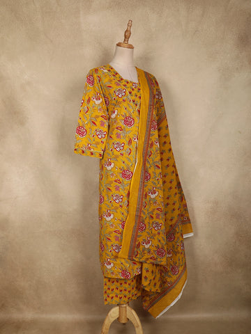 Mustard Yellow Floral Printed Design Cotton Straight Cut Salwar Suit with Dupatta