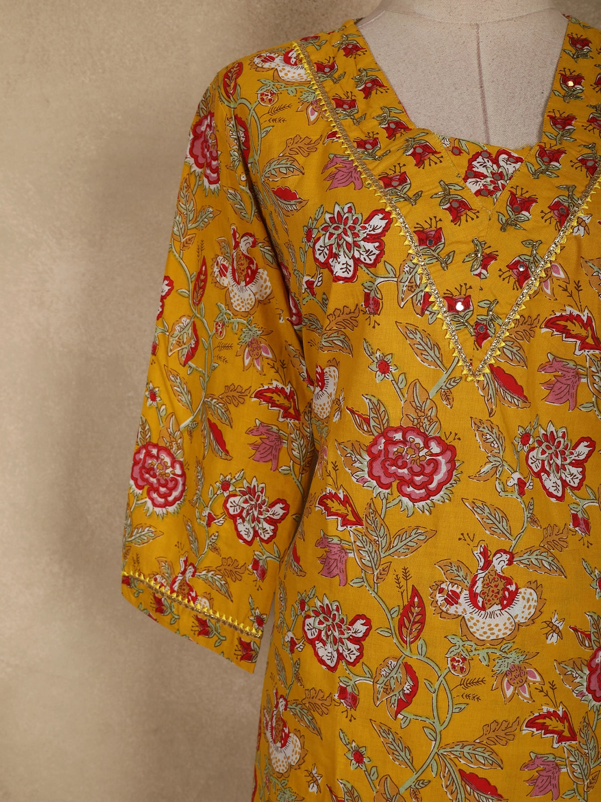 Refresh your everyday ethnic wardrobe with this elegant Mustard Yellow Floral Printed Cotton Salwar Suit, thoughtfully designed for comfort and effortless style. Crafted from breathable cotton fabric, the suit features a rich burgundy base beautifully enhanced with vibrant floral and botanical prints in warm earthy hues, creating a timeless and graceful appeal.