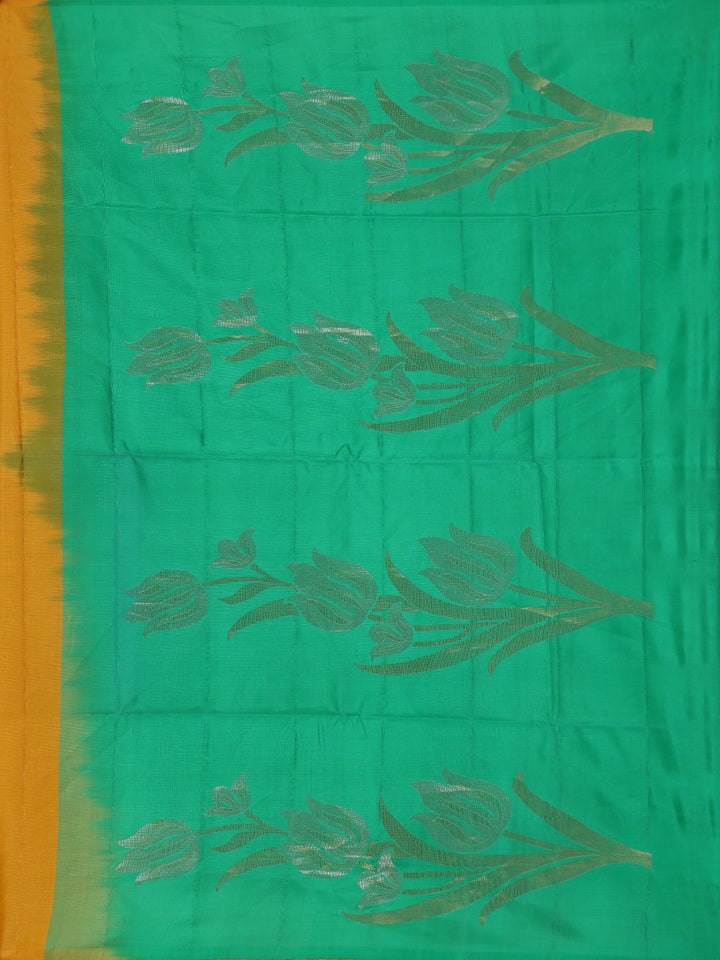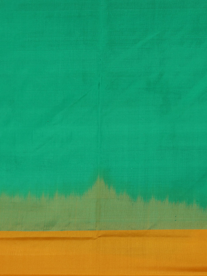 The saree features a contrast green pallu beautifully highlighted with intricate floral zari patterns, adding a touch of vibrance and richness to the drape. Paired with a matching green blouse, this saree reflects a perfect balance of tradition and grace — an effortless choice for those who appreciate timeless South Indian craftsmanship.
