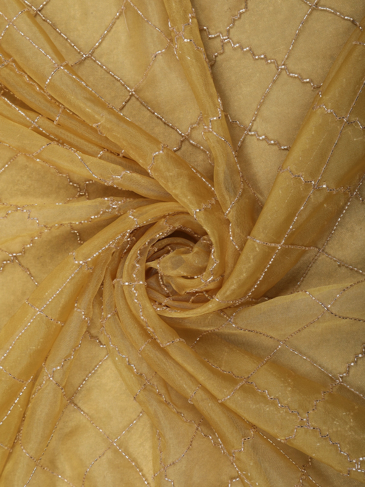 Step into refined elegance with this stunning Mustard Yellow net designer saree, crafted to make a graceful statement at every special occasion. The saree features a soft yet vibrant mustard yellow base, beautifully elevated with intricate all-over sequin and bead embroidery arranged in a delicate lattice pattern, creating a luxurious shimmer with every movement.