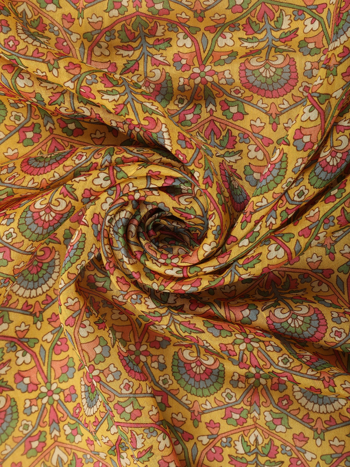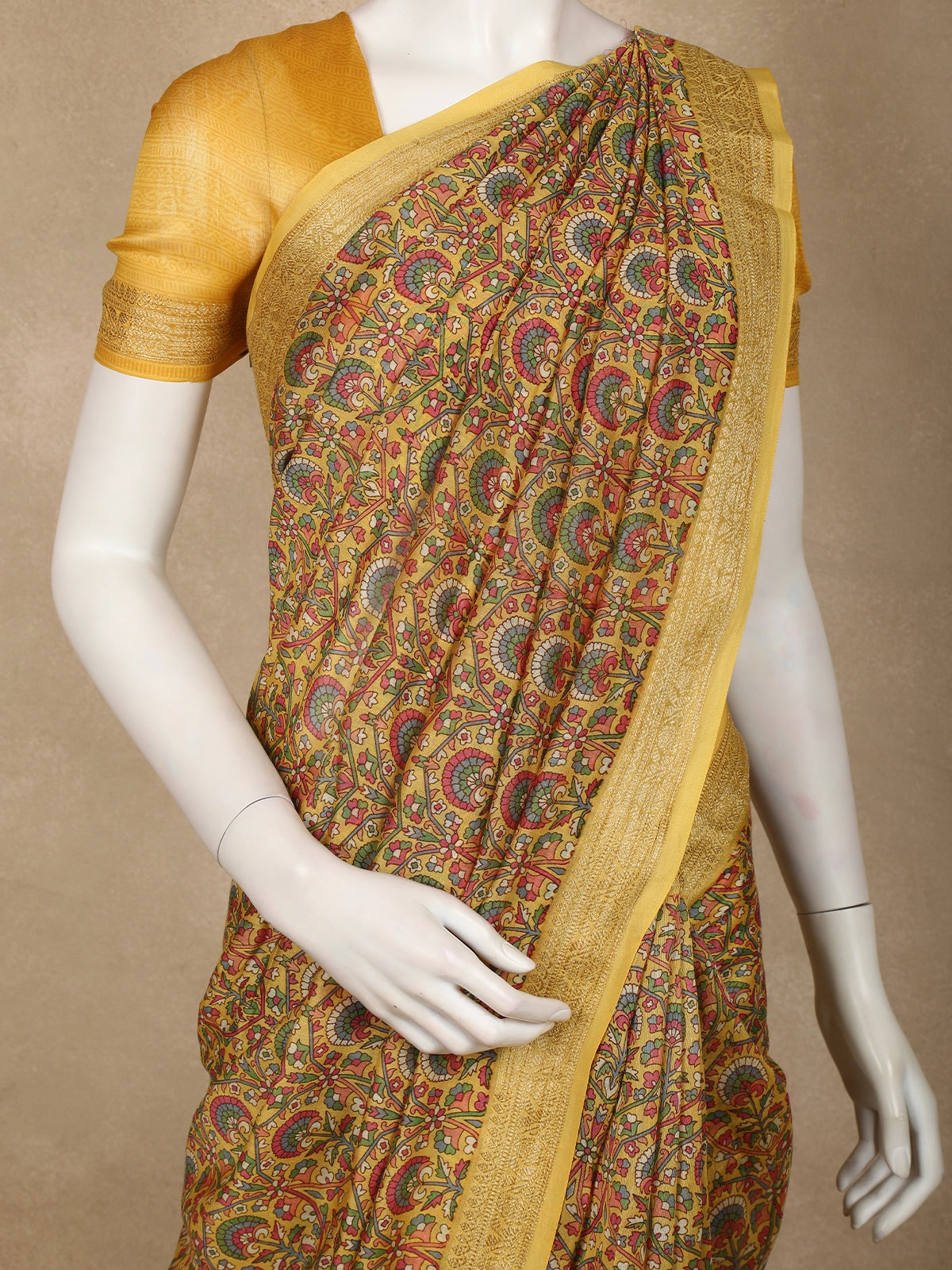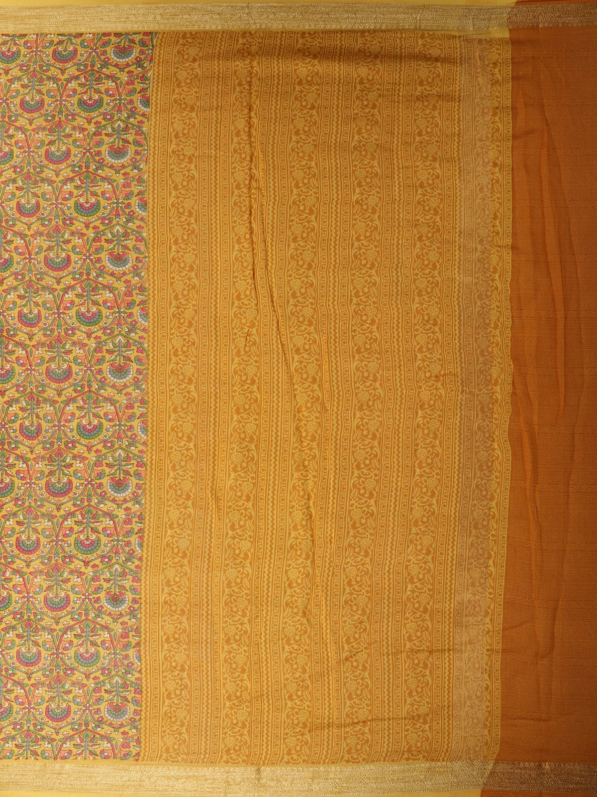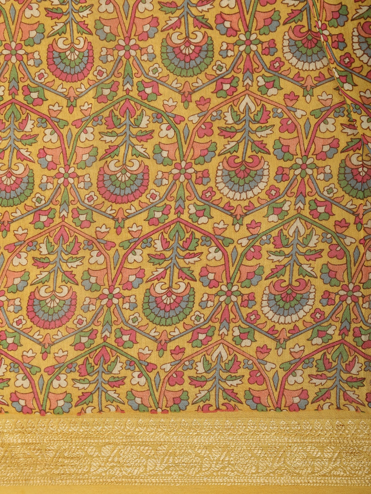Mustard Yellow Kalamkari Printed Cotton Saree