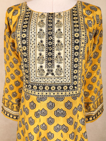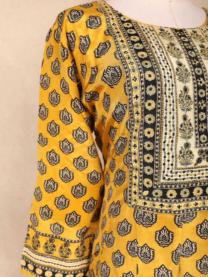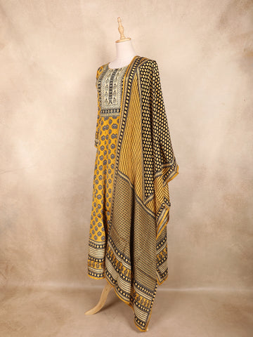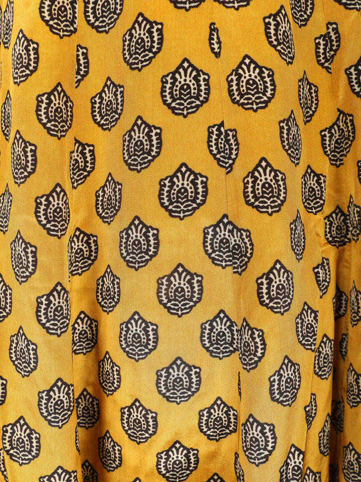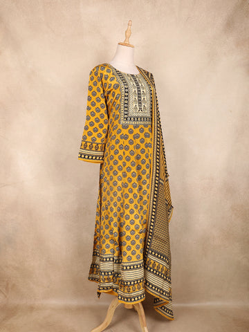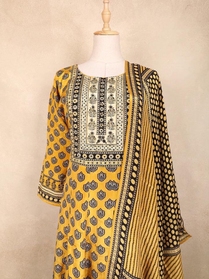 Mustard Yellow Kashmiri Floral Printed Design Crepe Straight Cut Salwar Suit with Dupatta