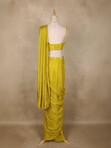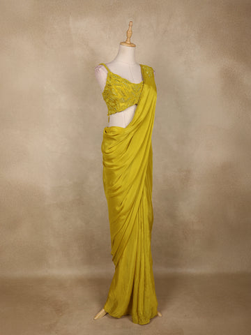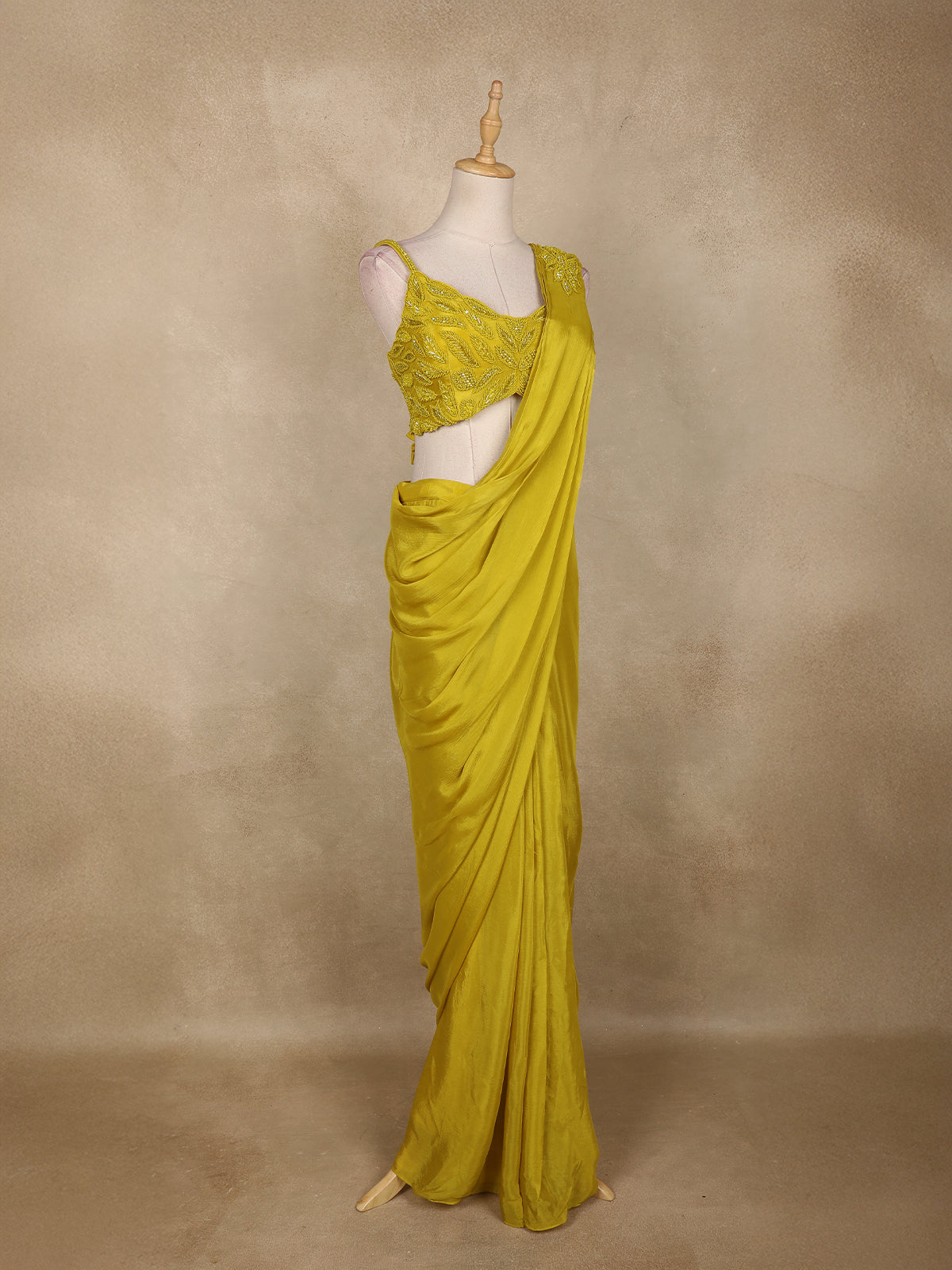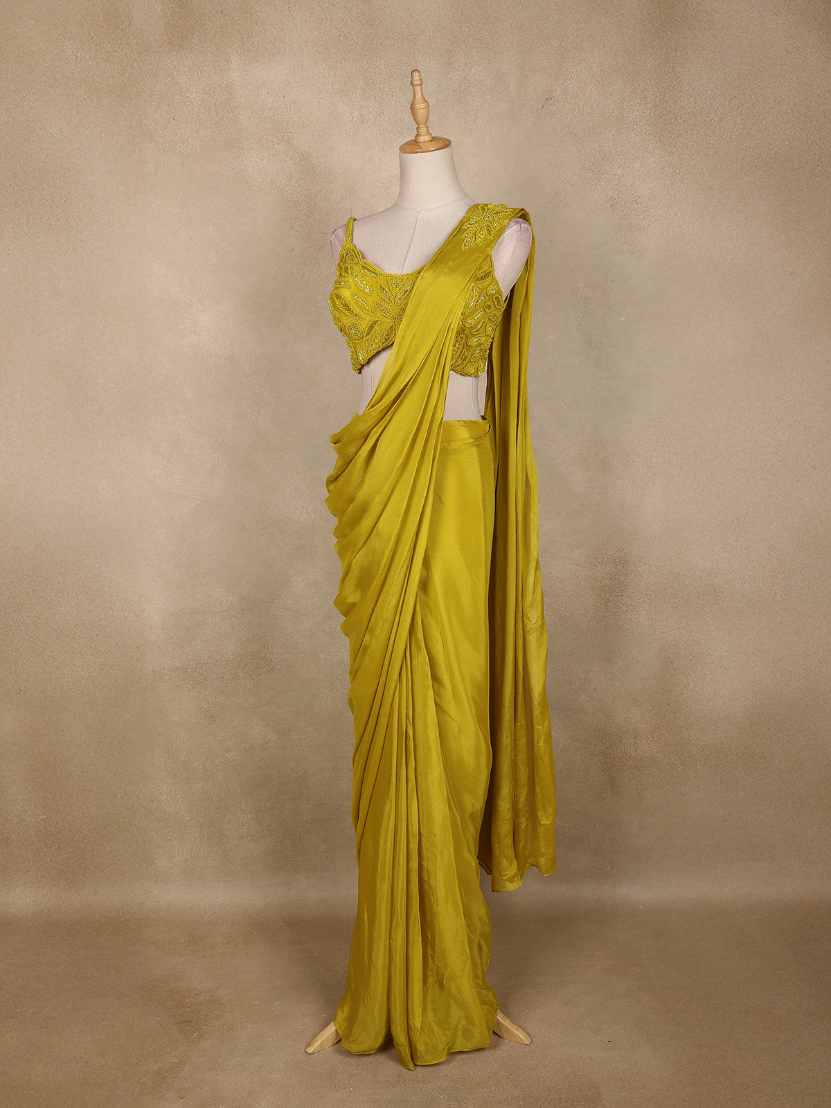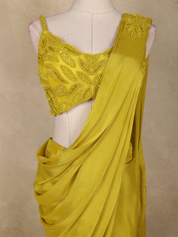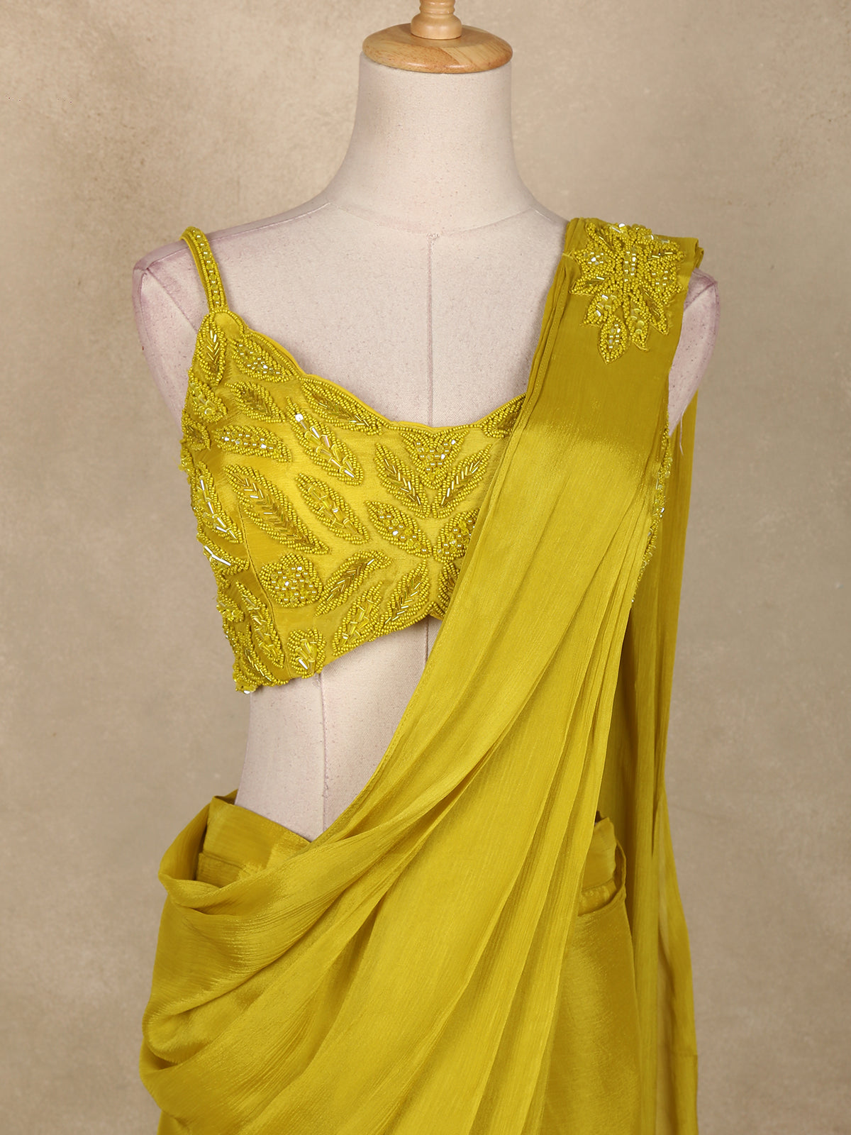 Step into the spotlight with this stunning Mustard Yellow Ready-to-Wear Saree, crafted for effortless elegance and modern charm. Made from flowy georgette, the saree drapes beautifully with pre-stitched pleats that enhance your silhouette — giving you a graceful look without the hassle of draping.