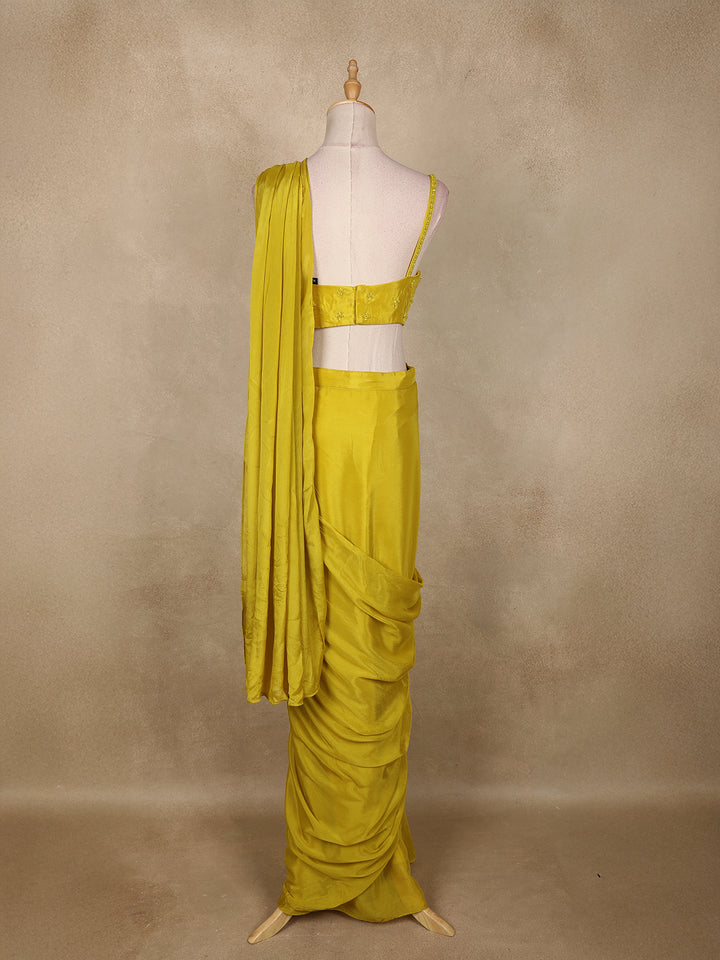 Mustard Yellow Sequins Embellished Design Georgette Ready To Wear Saree with Designer Blouse