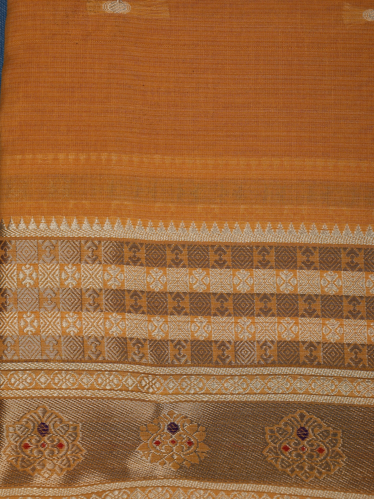 Mustard Yellow Solid Design Fancy Cotton Saree