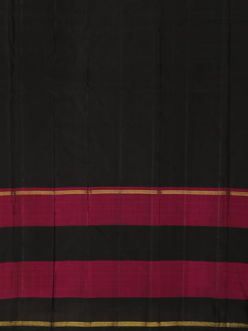 Adding bold contrast, the saree is framed with a distinctive checked border in deep maroon and black, intricately accented with antique gold woven motifs that bring heritage charm and visual depth. The temple-style detailing along the border and pallu enhances its classic South Indian appeal, while the rich contrast beautifully balances the bright mustard base.