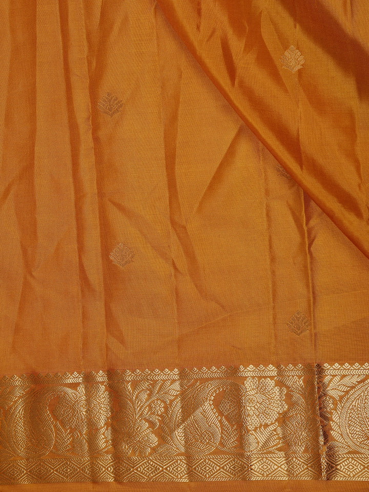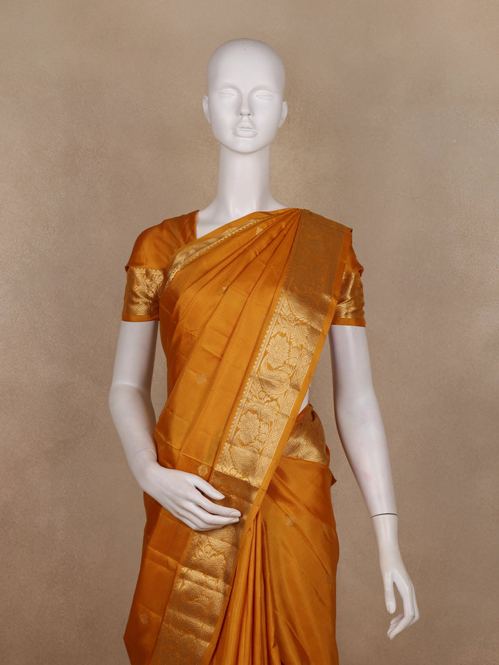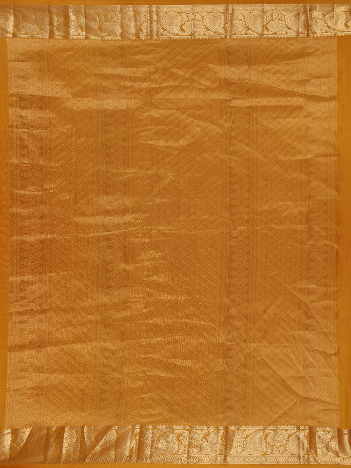 Mustard Yellow Solid Woven Design Pure Kanchipuram Silk Saree with Rich Zari Border