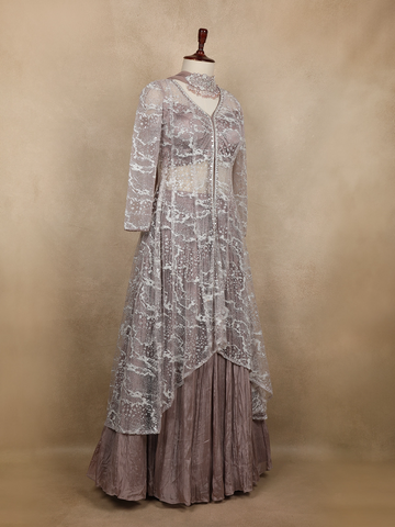 Muted Purple Sequins And Beads Embellished Net Lehenga