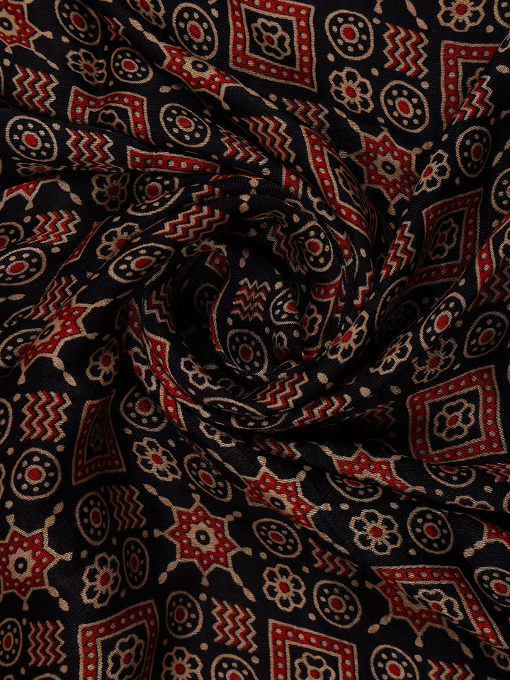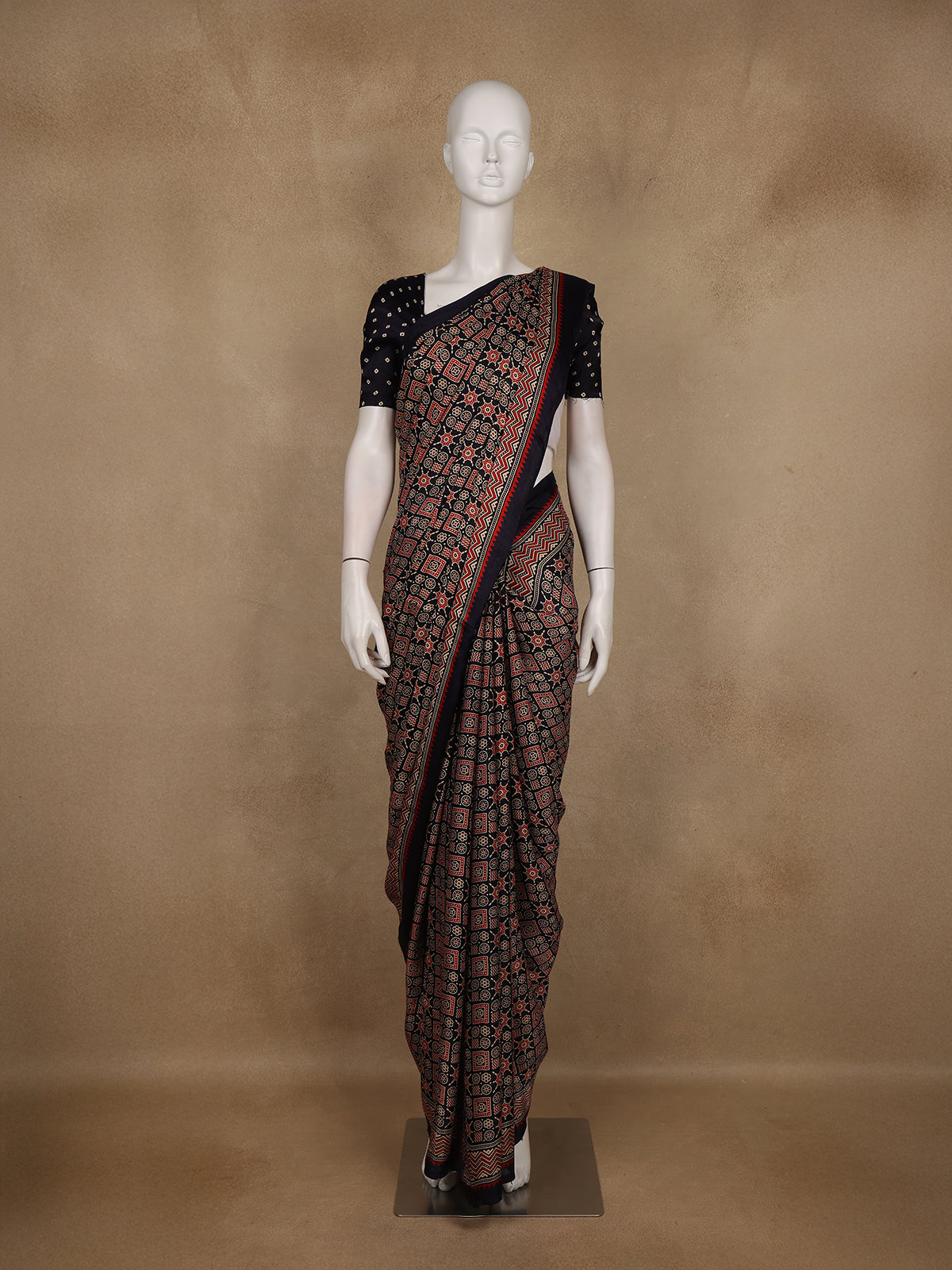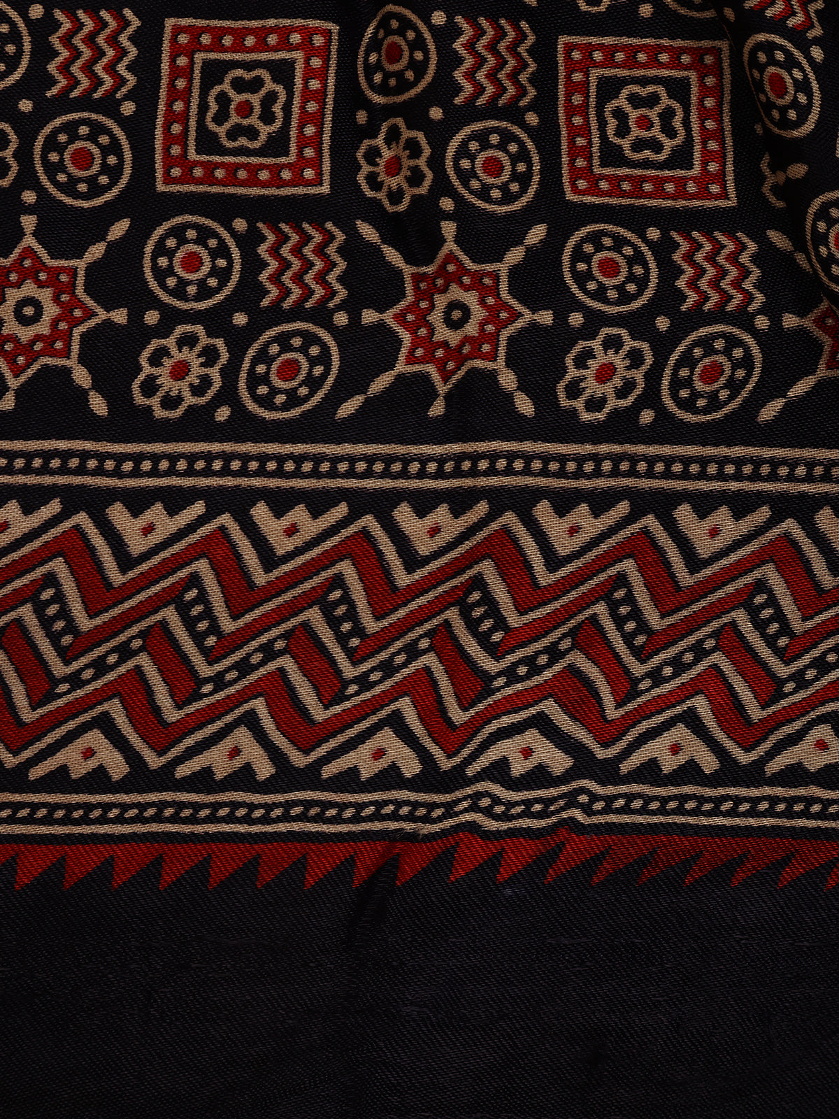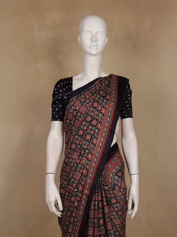 Navy Blue Ajrakh Print Mul Mul Cotton Saree