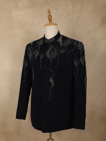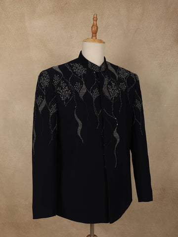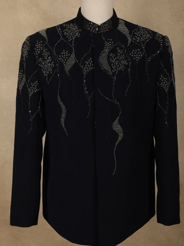 Navy Blue Beads Embroidered Design Polynosic Men's Suit