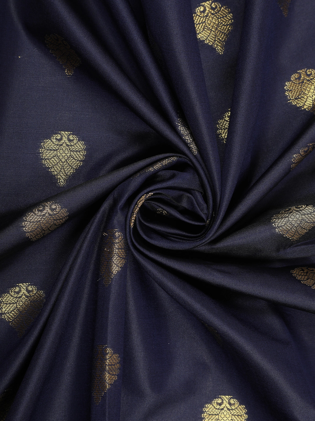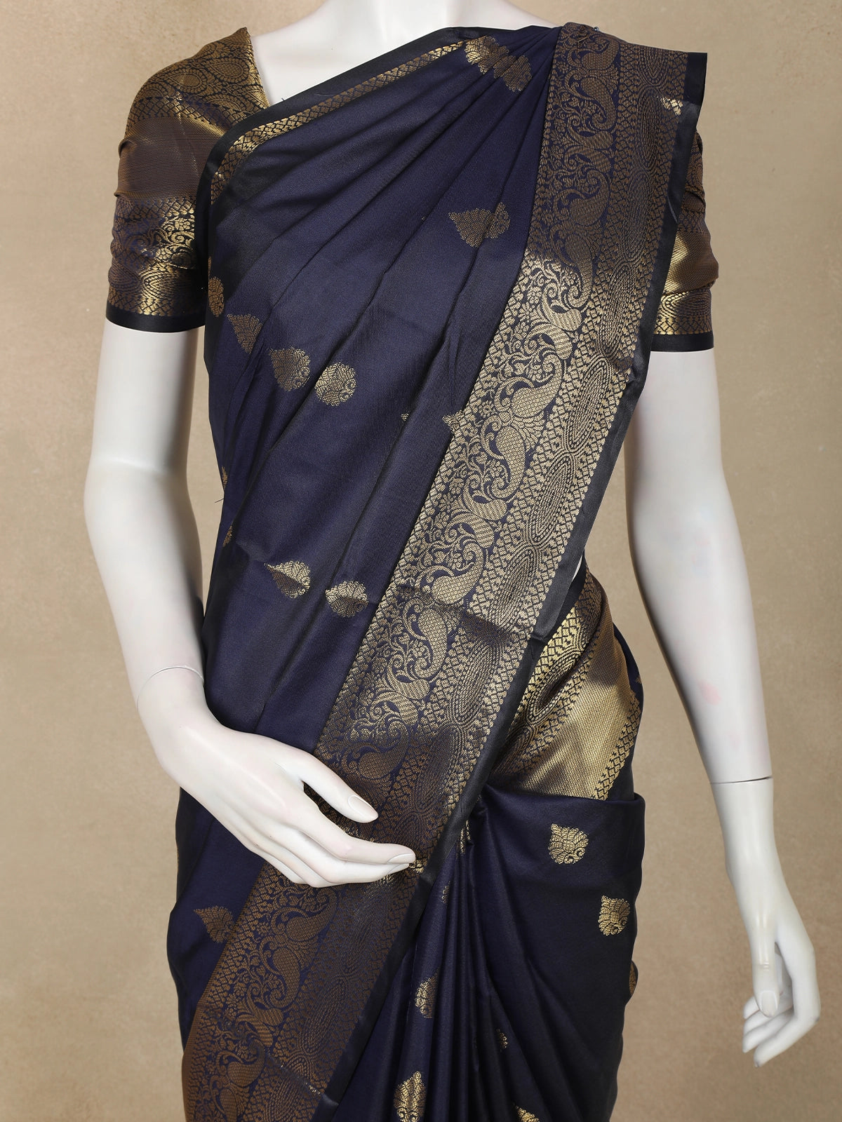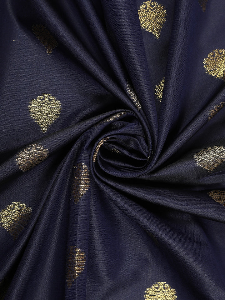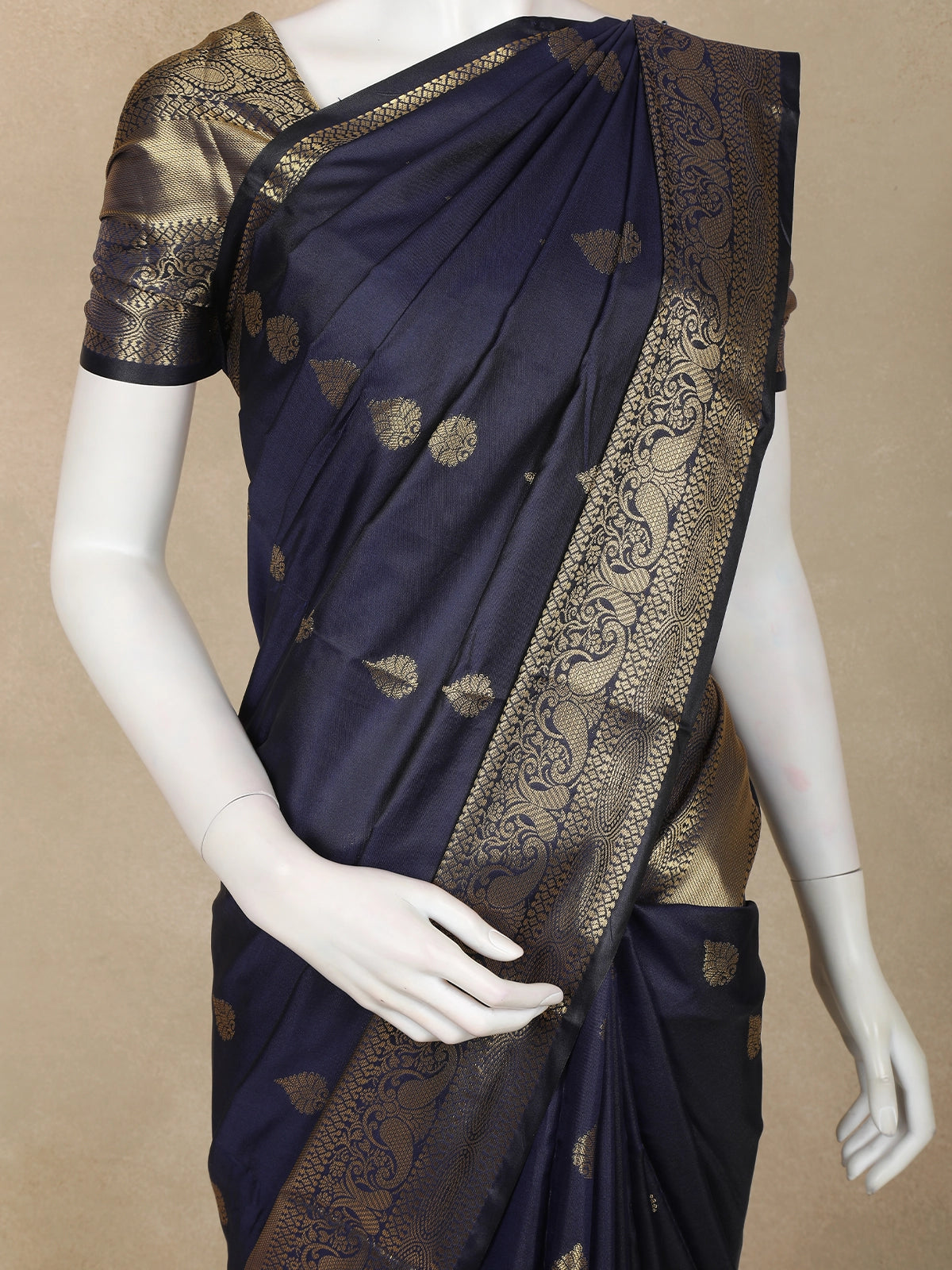 Navy Blue Butta Design Art Silk Saree with Contrast Zari Woven Border