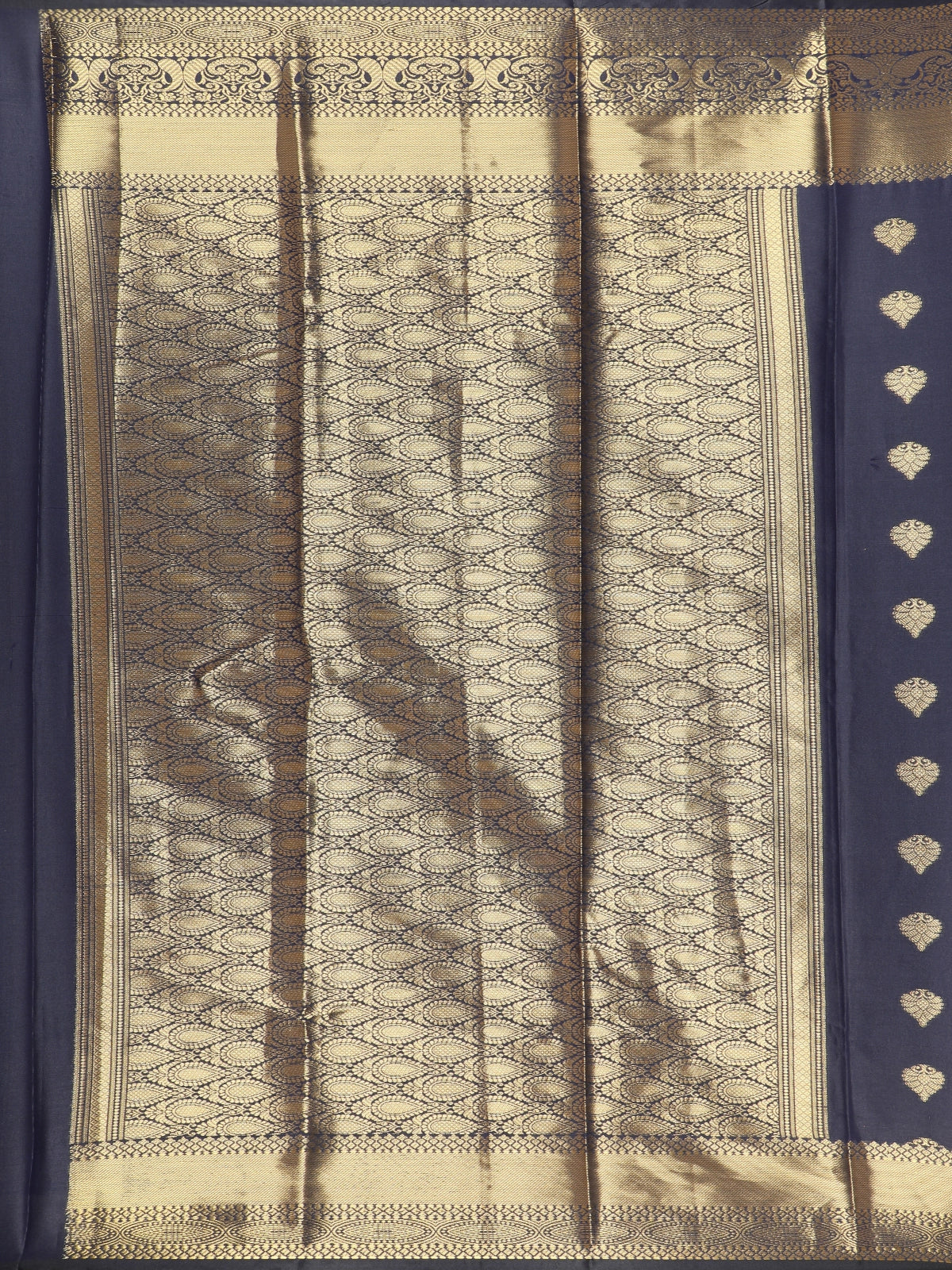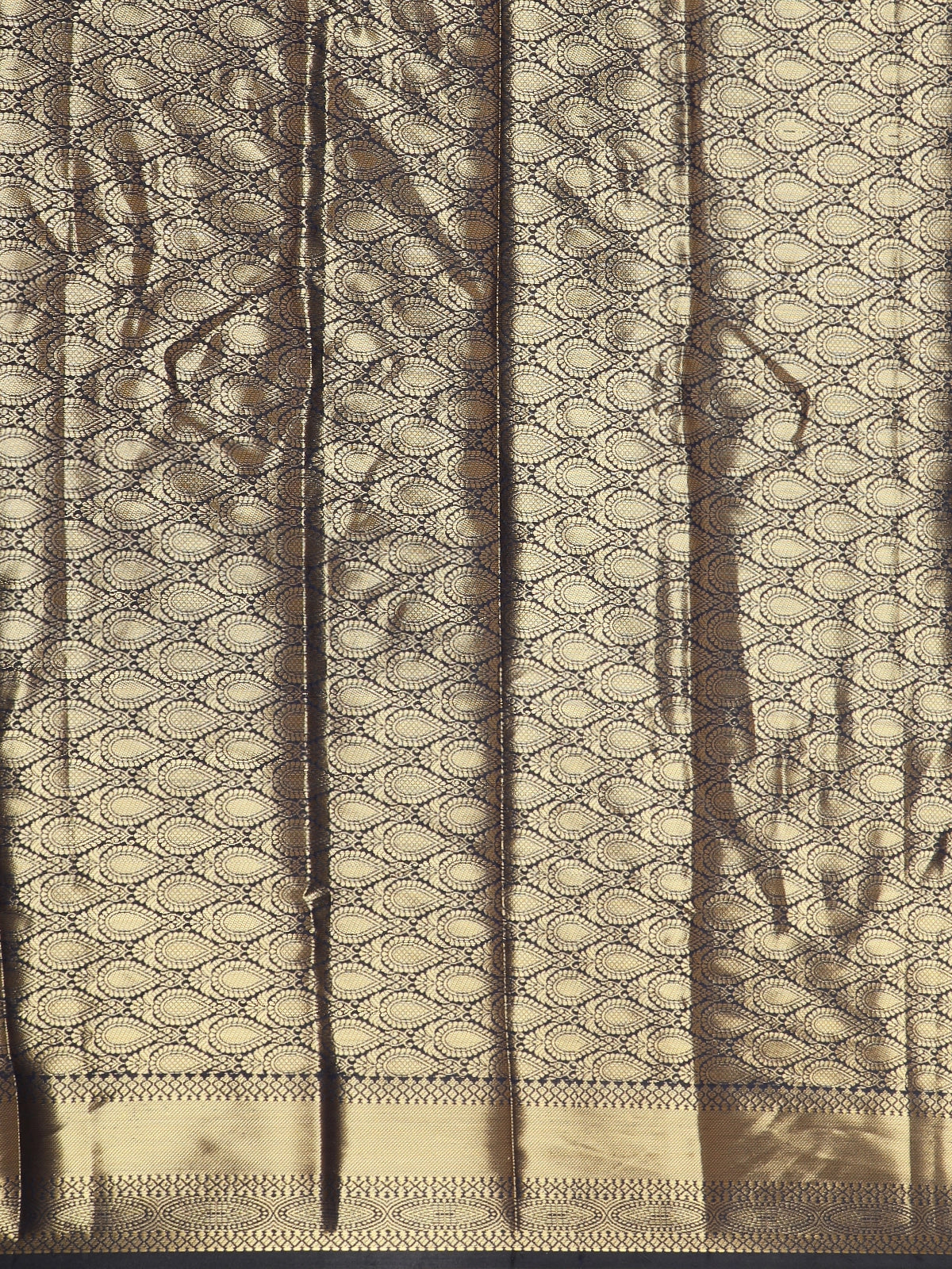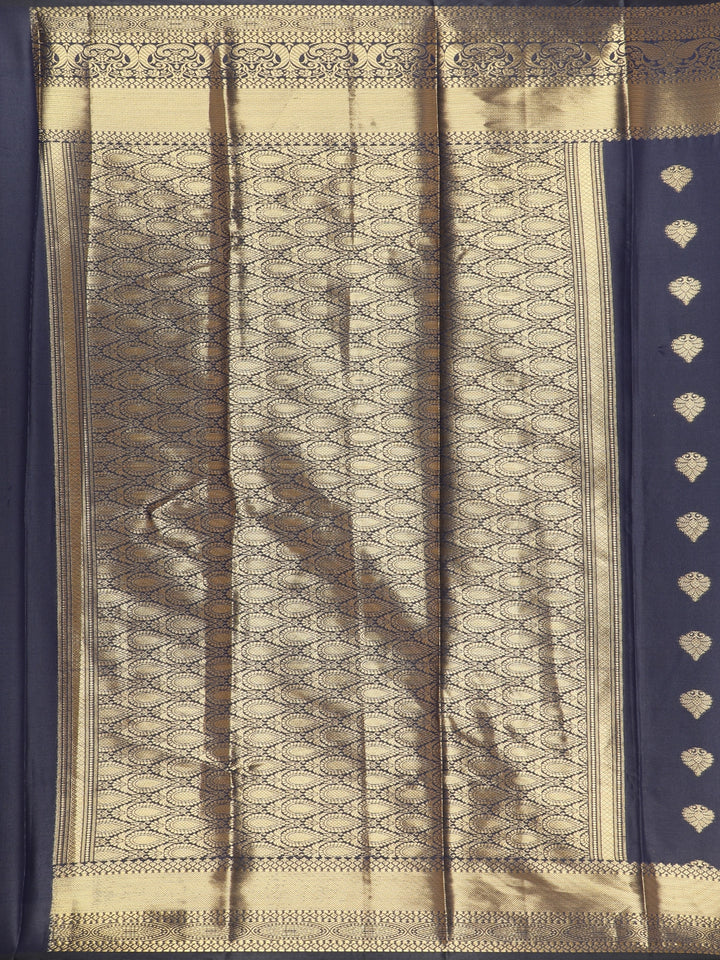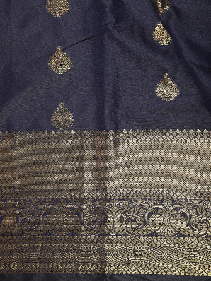 Navy Blue Butta Design Art Silk Saree with Contrast Zari Woven Border
