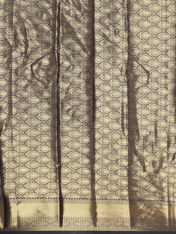 The highlight lies in its contrast gold zari woven border, featuring rich floral and paisley-inspired motifs crafted with finesse. The intricate craftsmanship continues into the pallu, adding a majestic finish that instantly enhances your festive ensemble. The smooth and lustrous art silk fabric ensures a graceful drape while offering effortless comfort throughout the occasion.