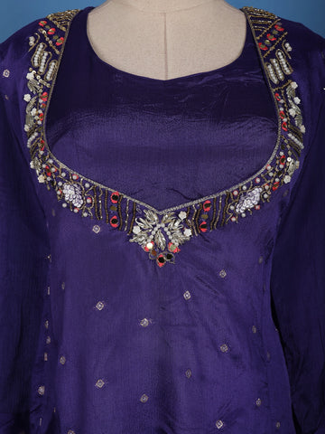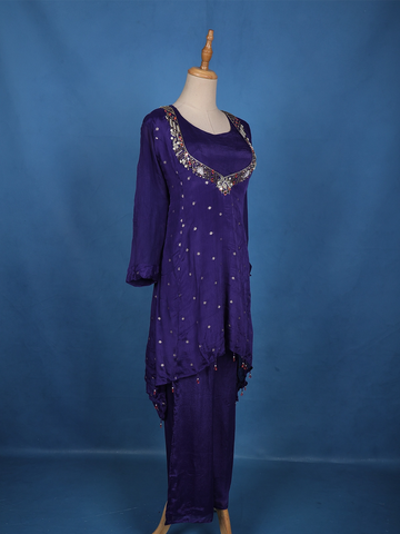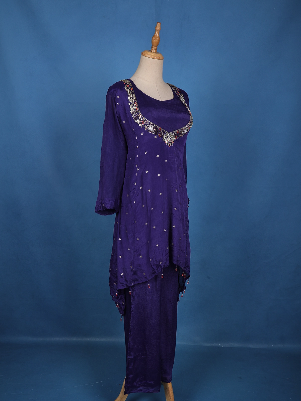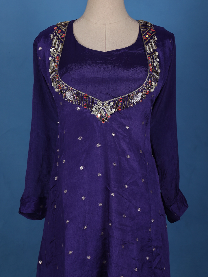 Adorned with intricate butta motifs and delicate embroidery work, the ensemble strikes a perfect balance between timeless artistry and refined charm. Each embroidered butta adds a glimmer of sophistication, making it an ideal choice for festive celebrations, evening gatherings, or family events.