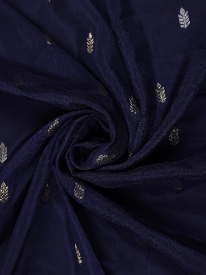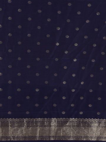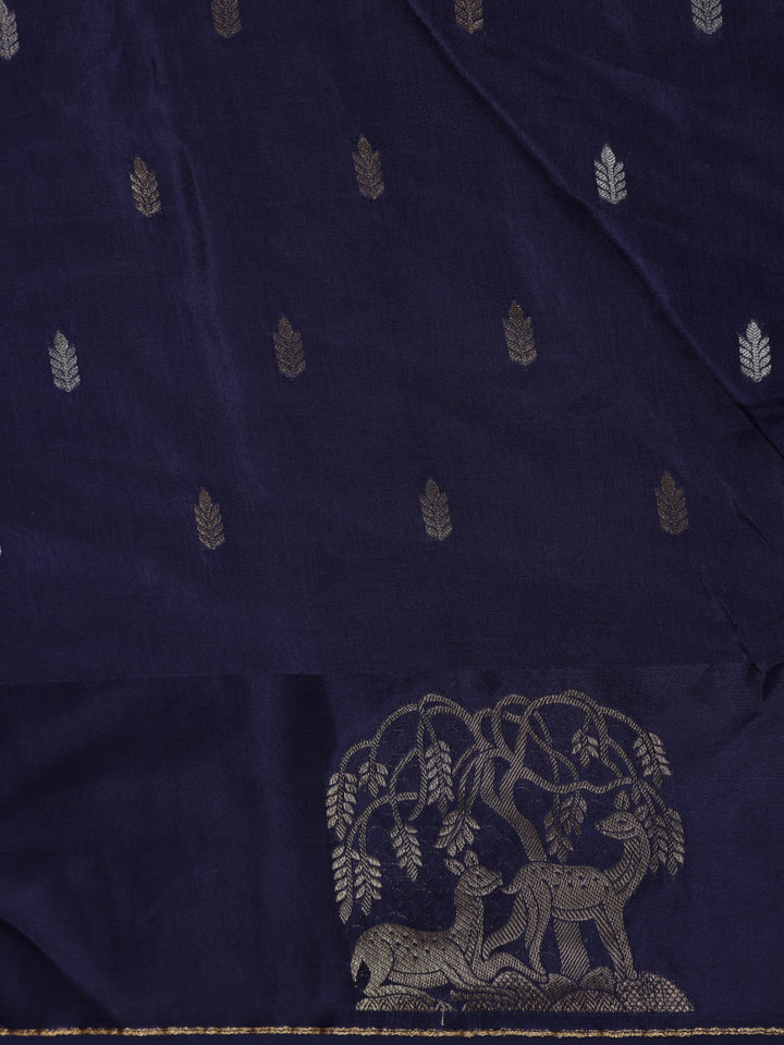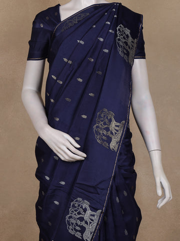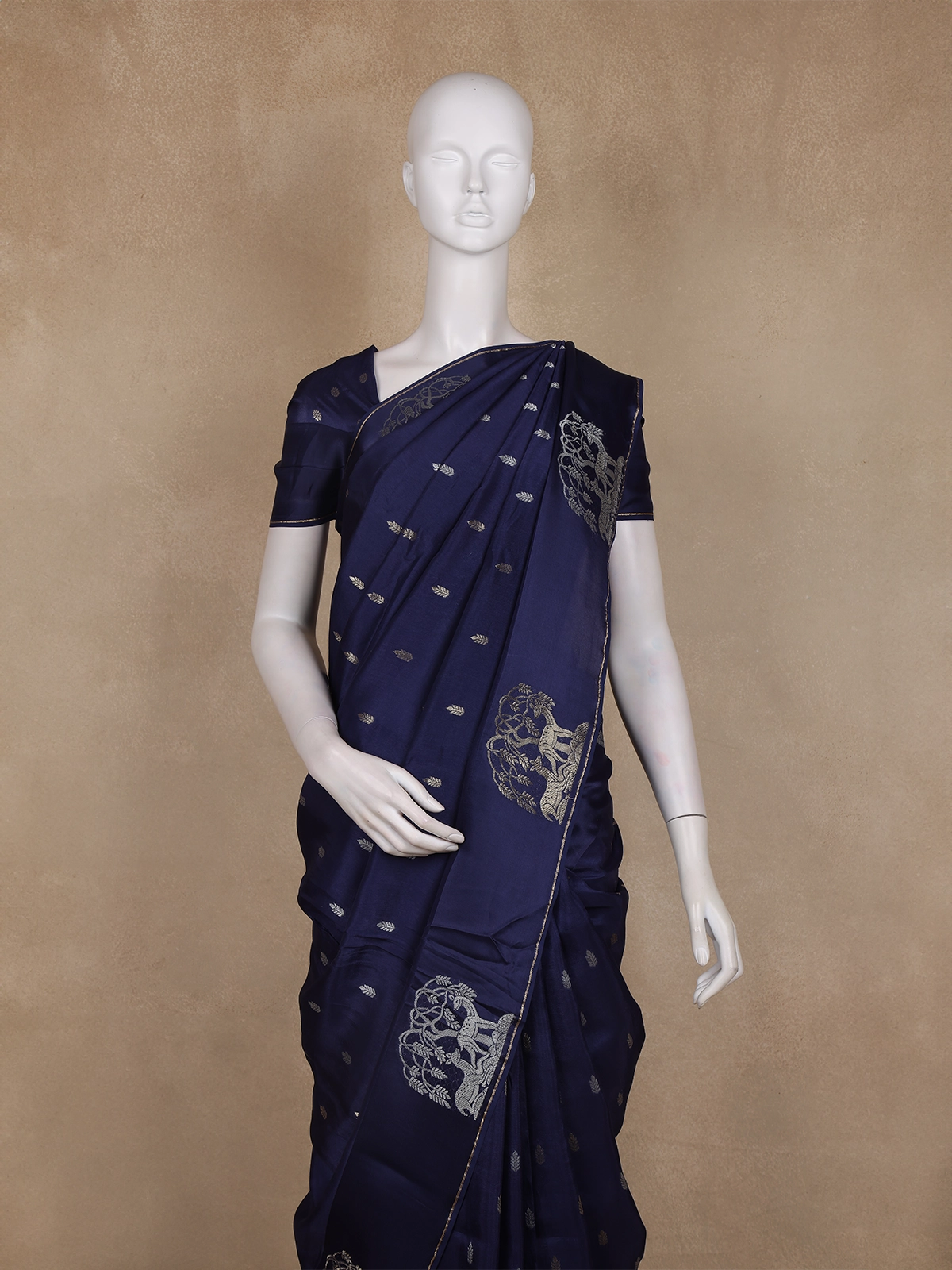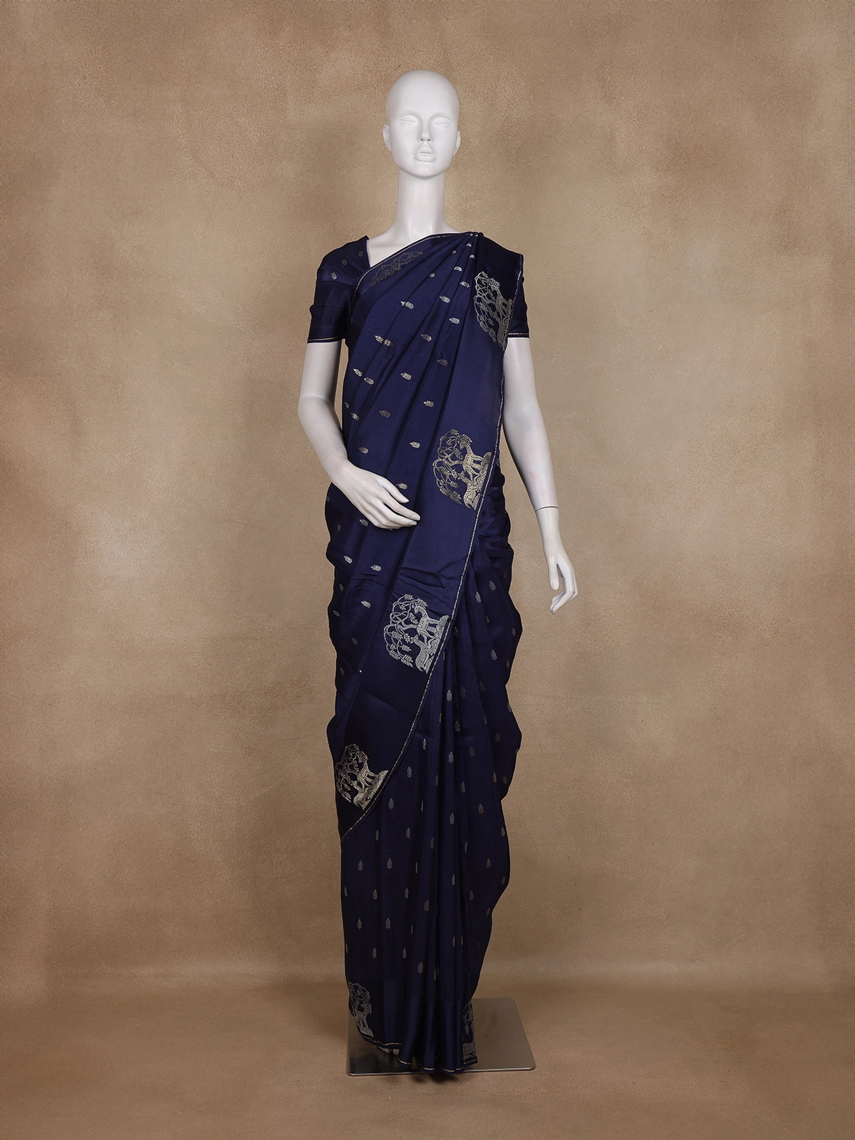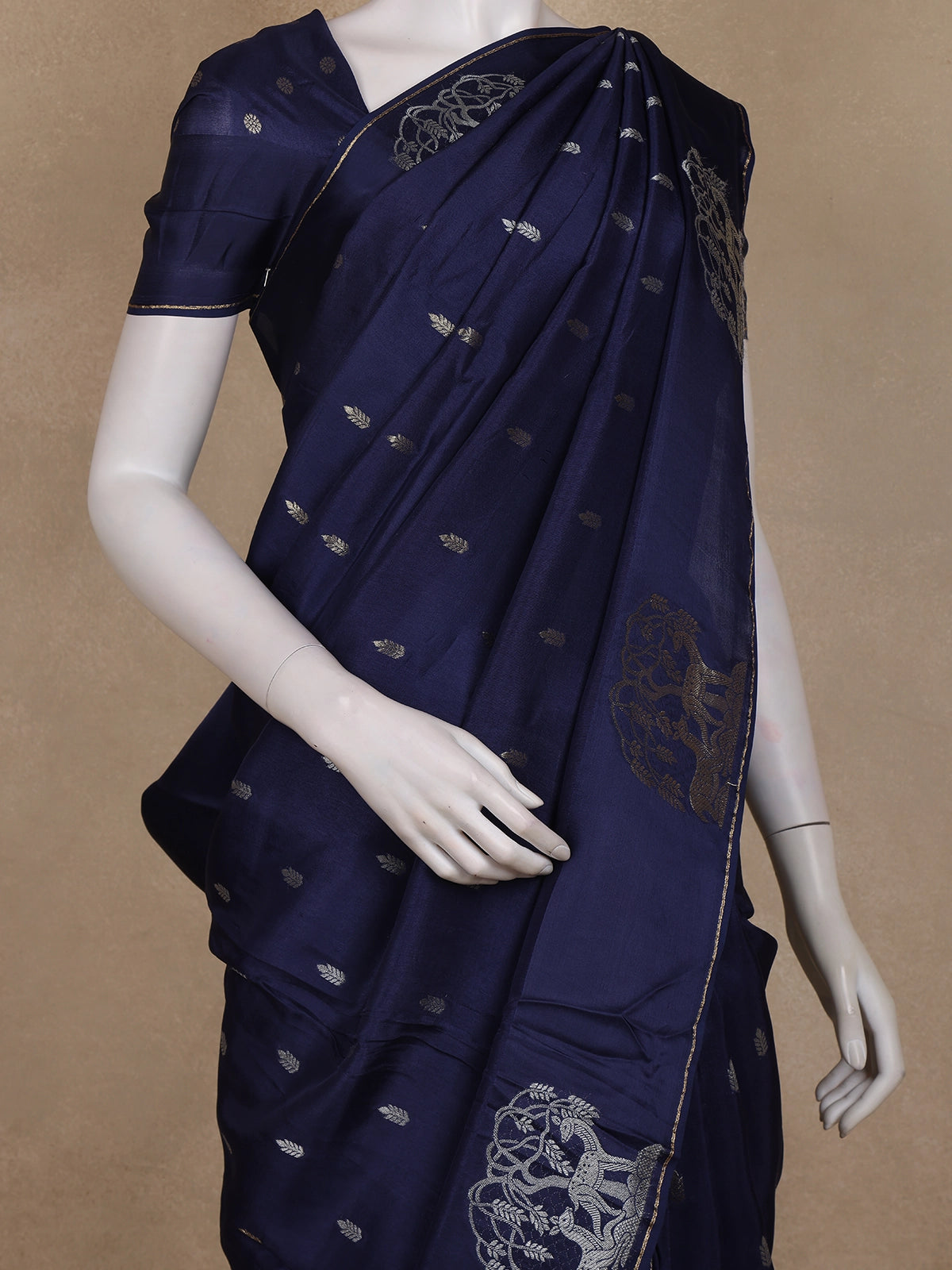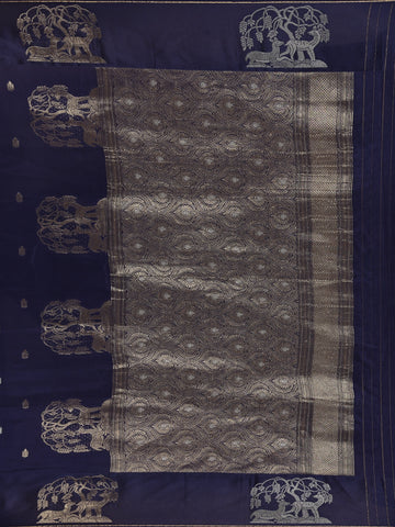 Navy Blue Butta Woven Design Semi Banarasi Saree withAnimal design Border