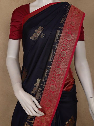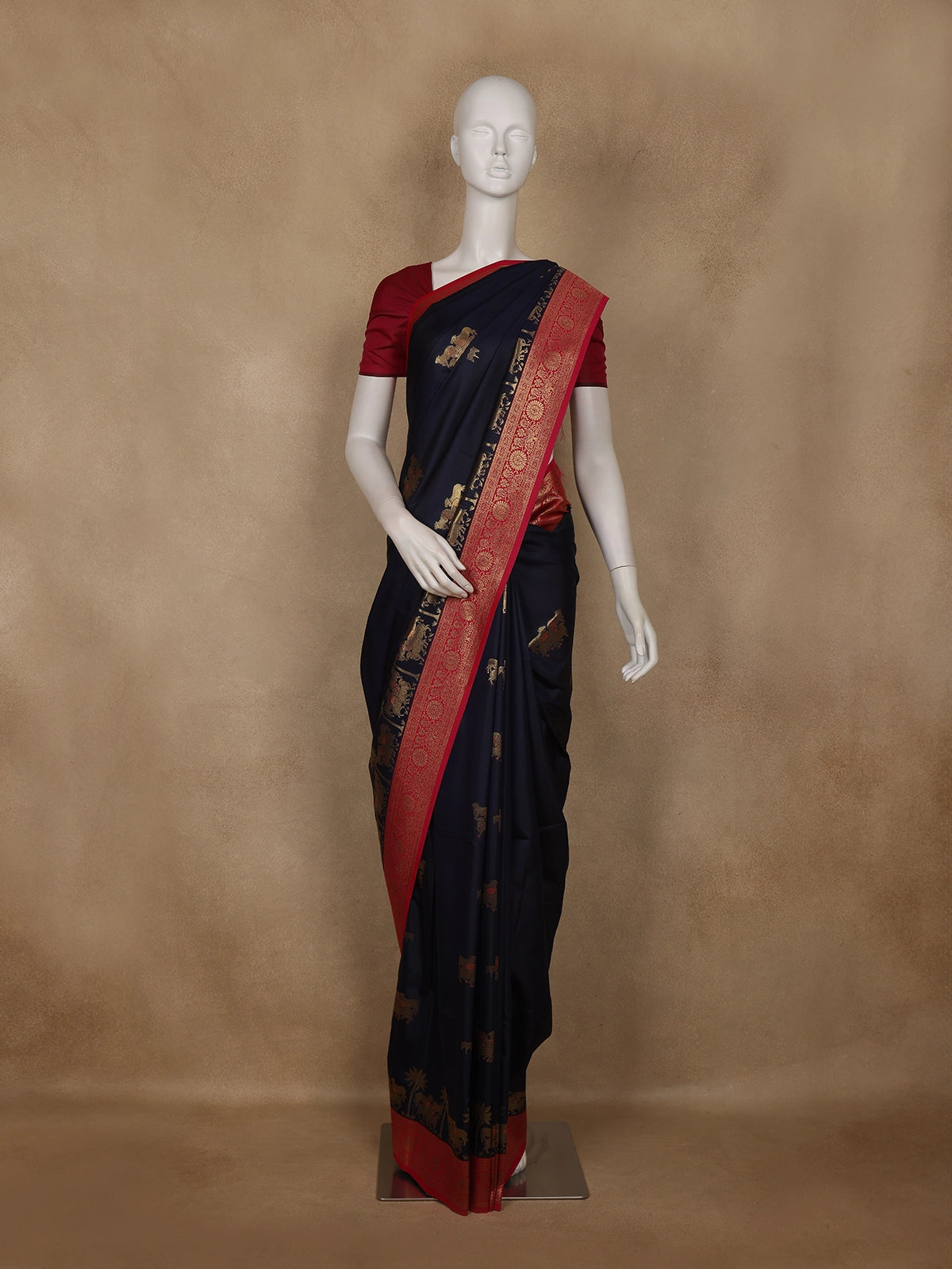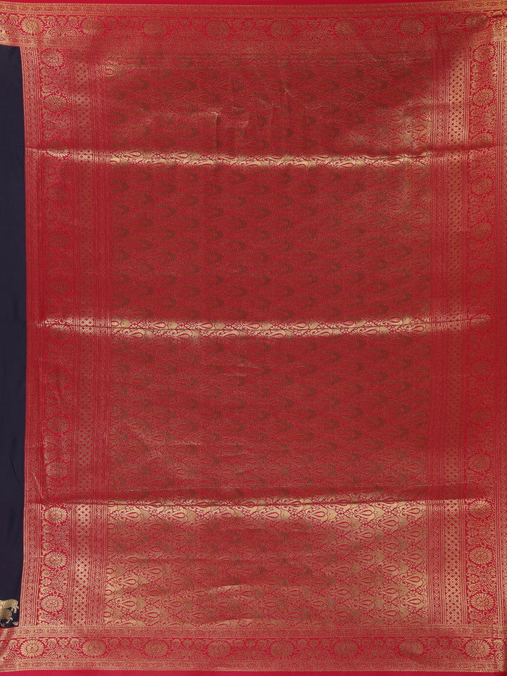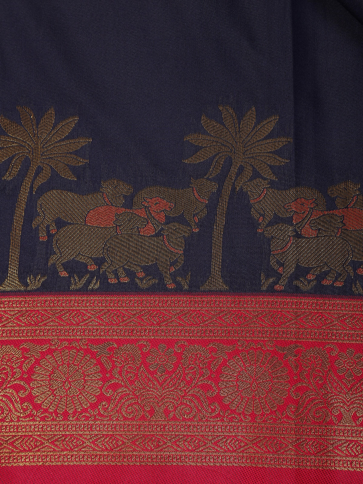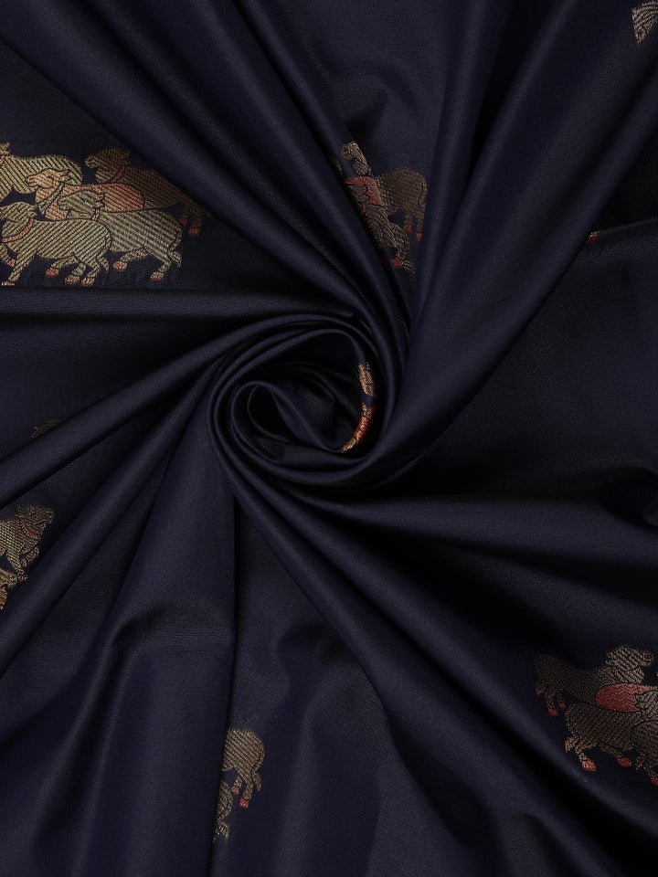 Navy Blue Cow Motif Woven Semi Soft Silk Saree