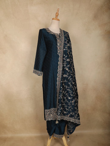 Perfect for festive celebrations, evening gatherings, family functions, and elegant parties, this navy blue georgette salwar suit blends timeless embroidery with modern grace, making it a versatile addition to your ethnic collection.