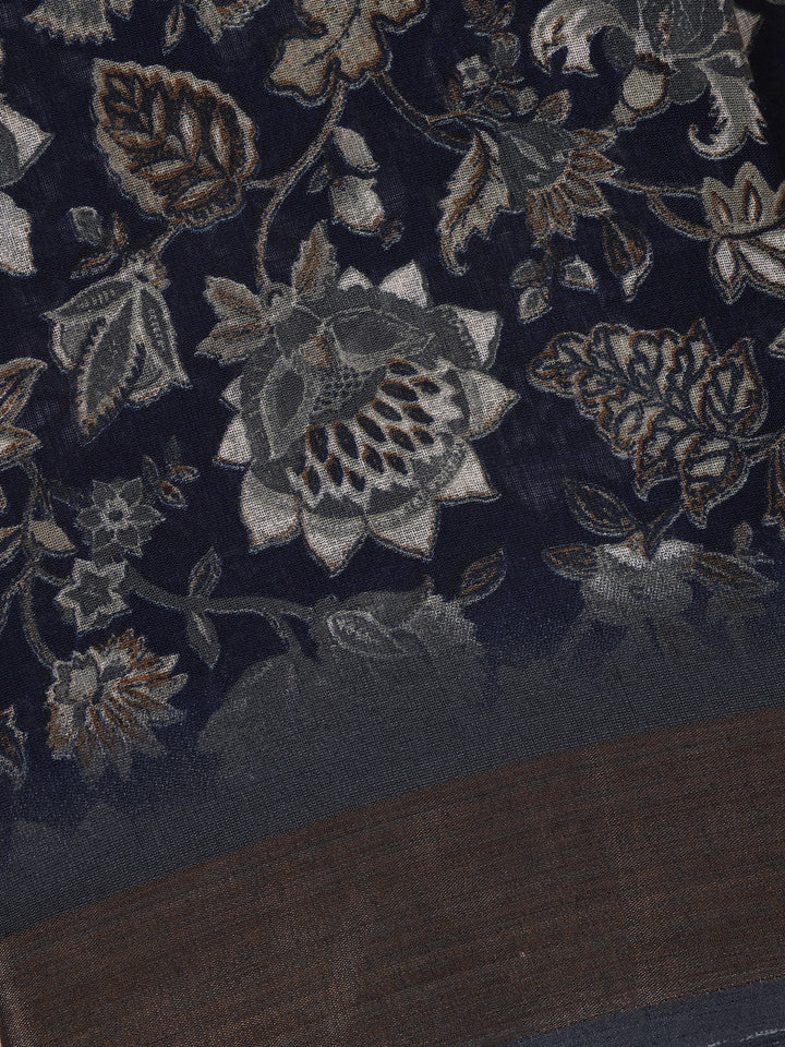 Add a touch of freshness to your wardrobe with this Navy Blue Floral Design Linen Cotton Saree. Woven from a soft and airy linen-cotton fabric, this saree offers effortless elegance and lasting comfort — perfect for day-long wear.