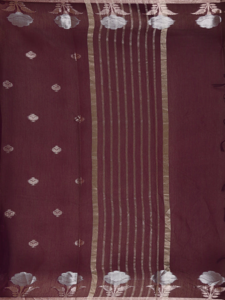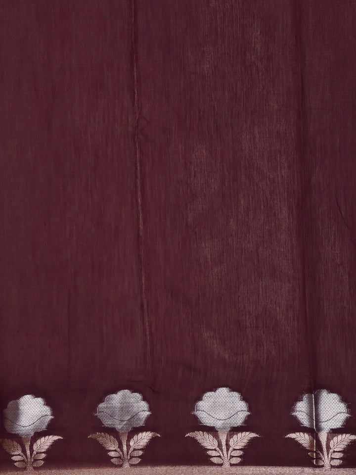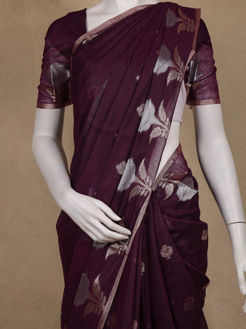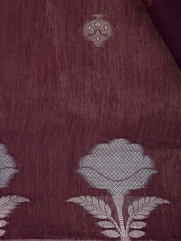 Embrace timeless Banarasi elegance with this Wine Floral Design Semi Banarasi Silk Saree, crafted to exude sophistication and charm. Made from premium semi Banarasi silk fabric, this saree showcases intricate floral woven motifs that shimmer with subtle zari detailing, adding richness to its deep navy hue.
