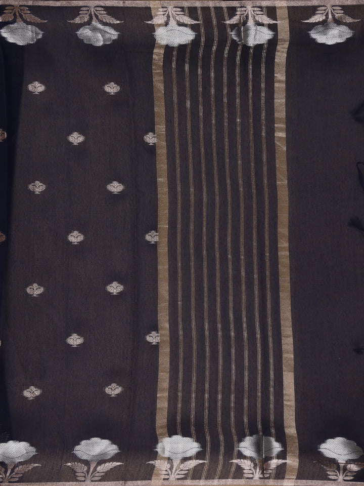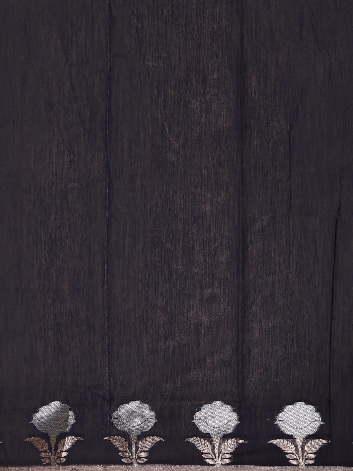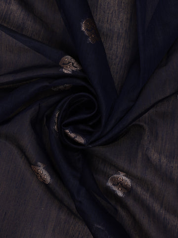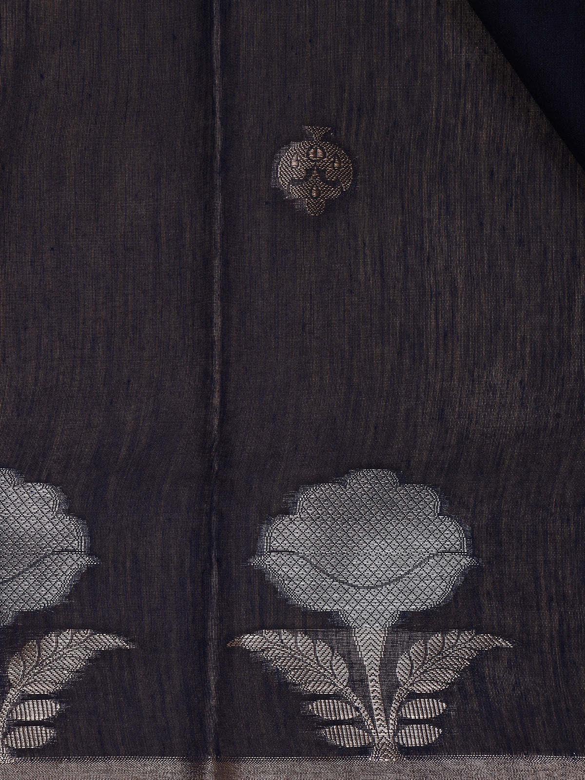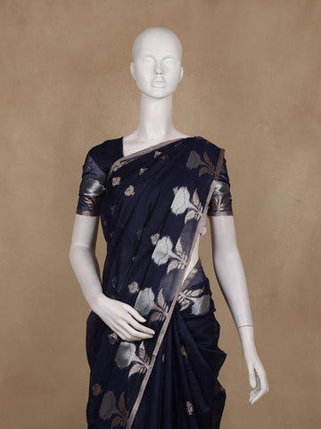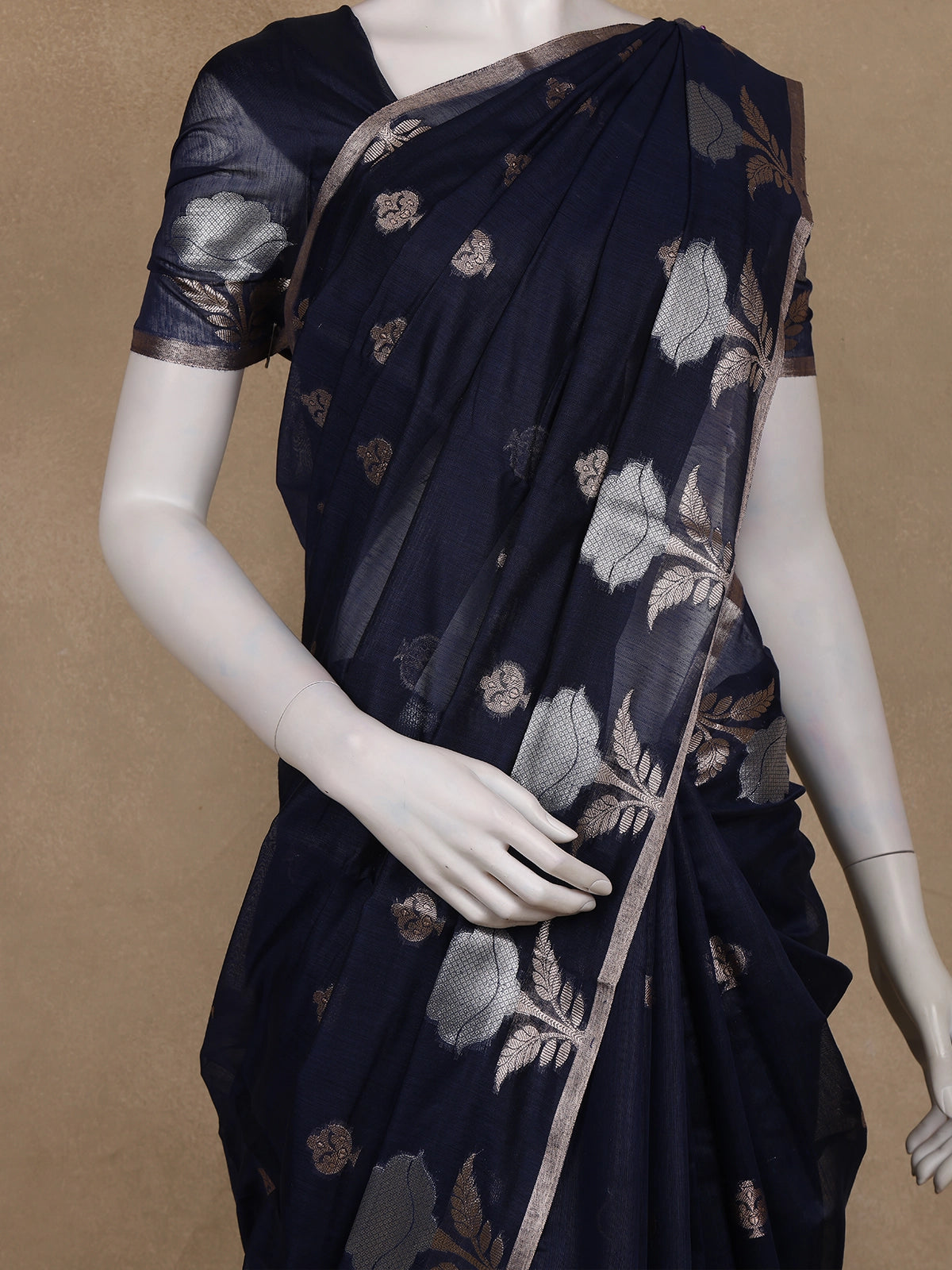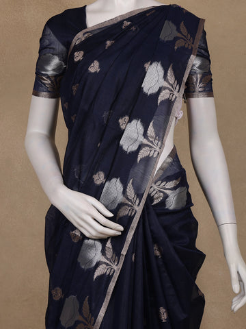 Navy Blue Floral Design Semi Banarasi Silk Saree