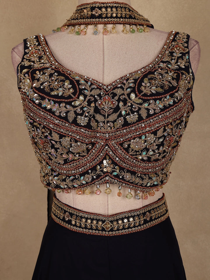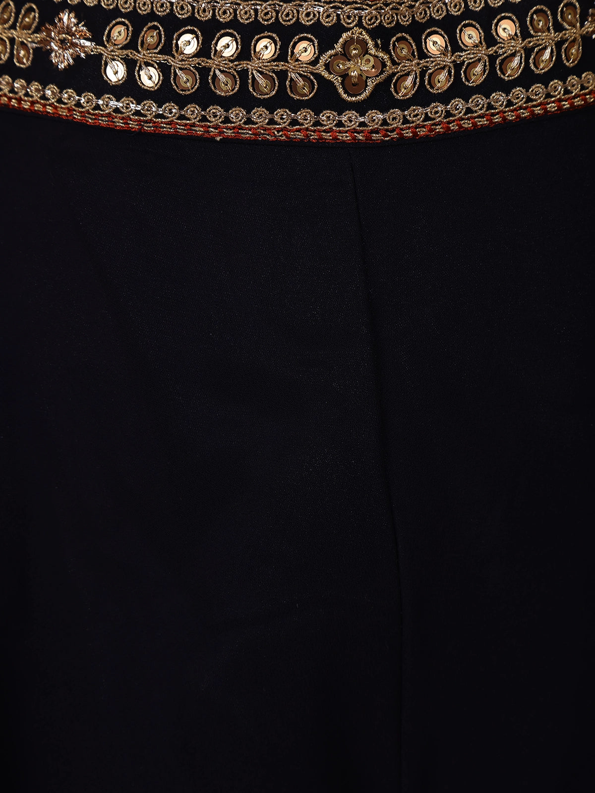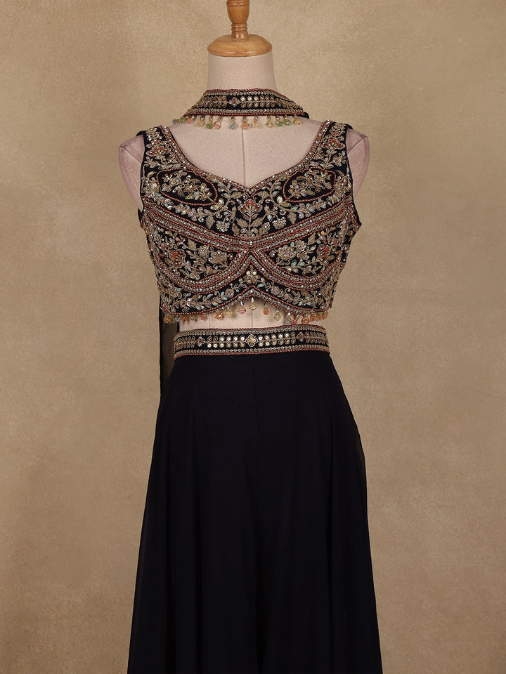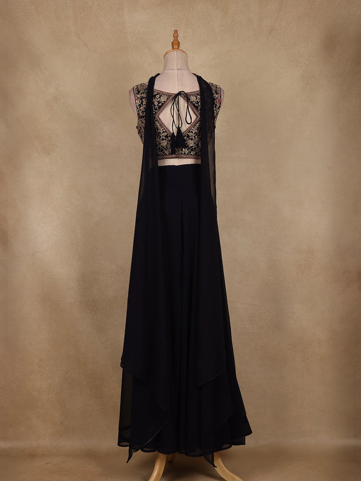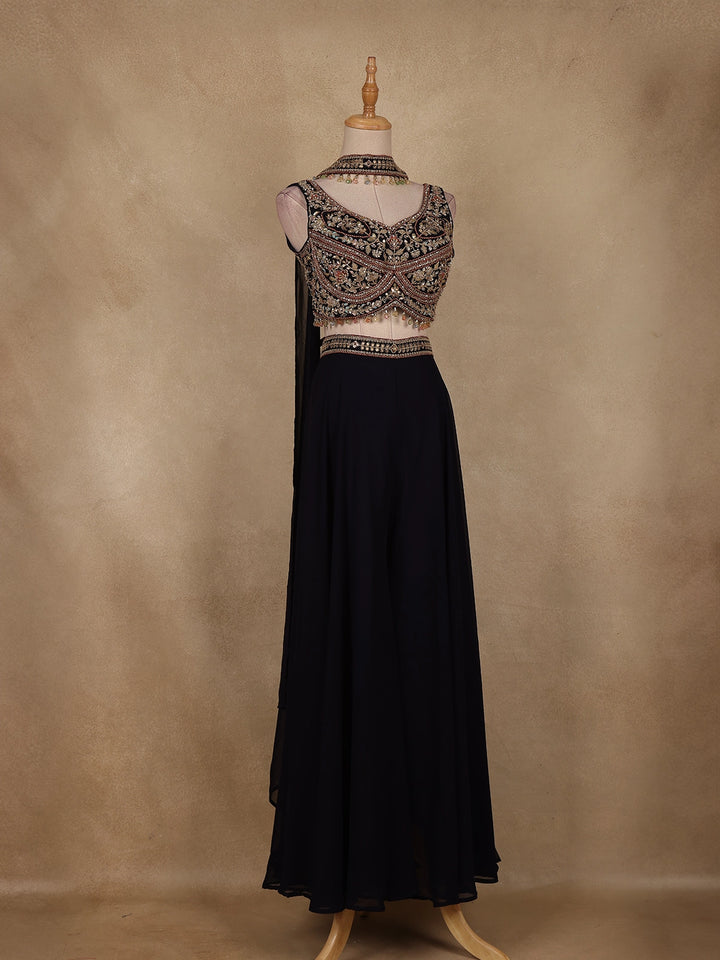 Navy Blue Floral Embroidered Chiffon Palazzo Suit