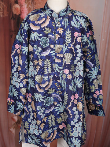 Give your little one a stylish festive look with this Navy Blue Floral Printed Cotton Kurta Set. Designed with playful yet elegant floral patterns in soft pastel tones, this outfit adds the right touch of charm to every celebration. The breathable cotton fabric ensures all-day comfort, while the collar neck and full sleeves bring a traditional finish. Paired with a classic white pajama, this set is perfect for weddings, festive gatherings, school ethnic days, and family occasions.