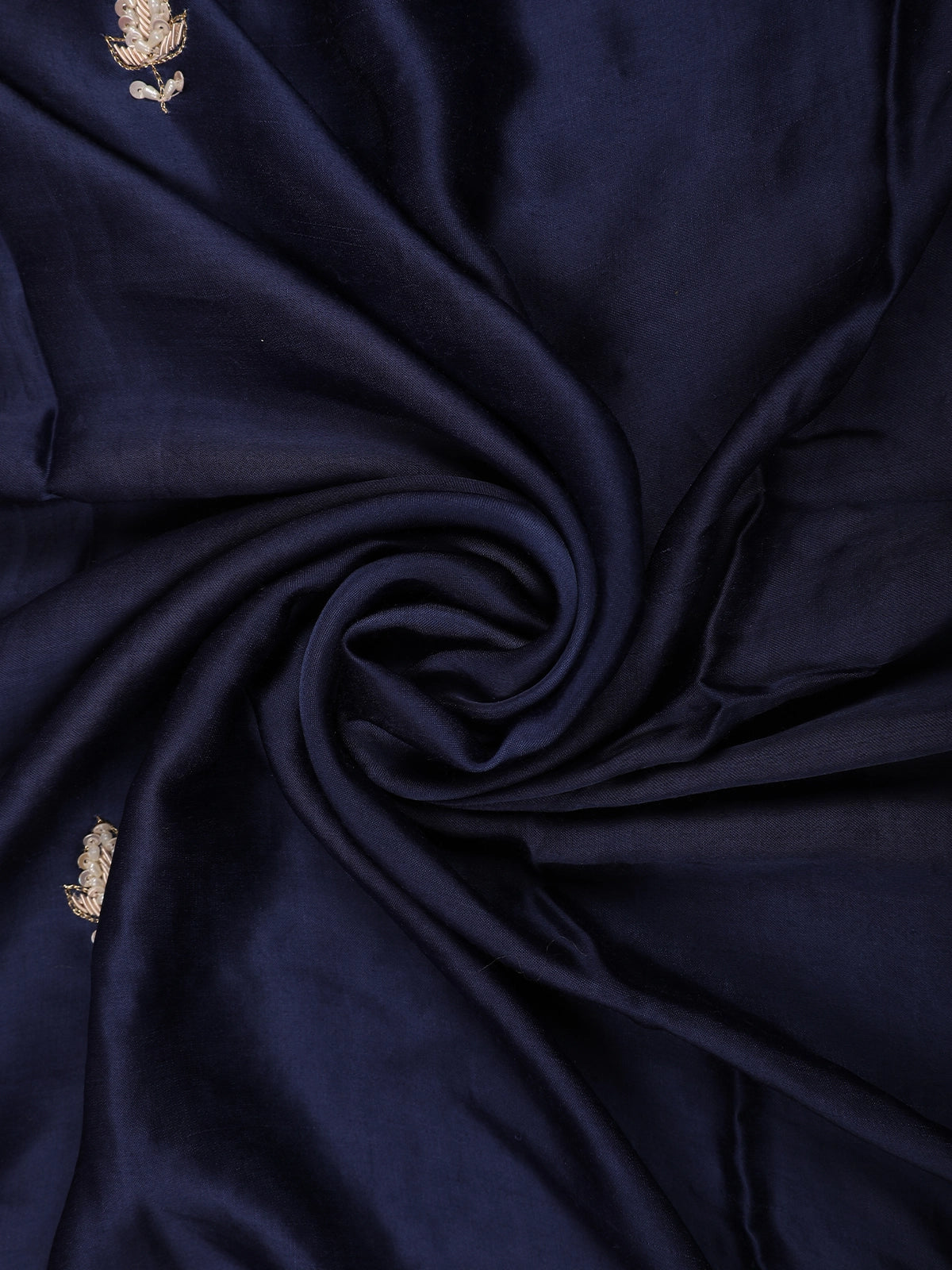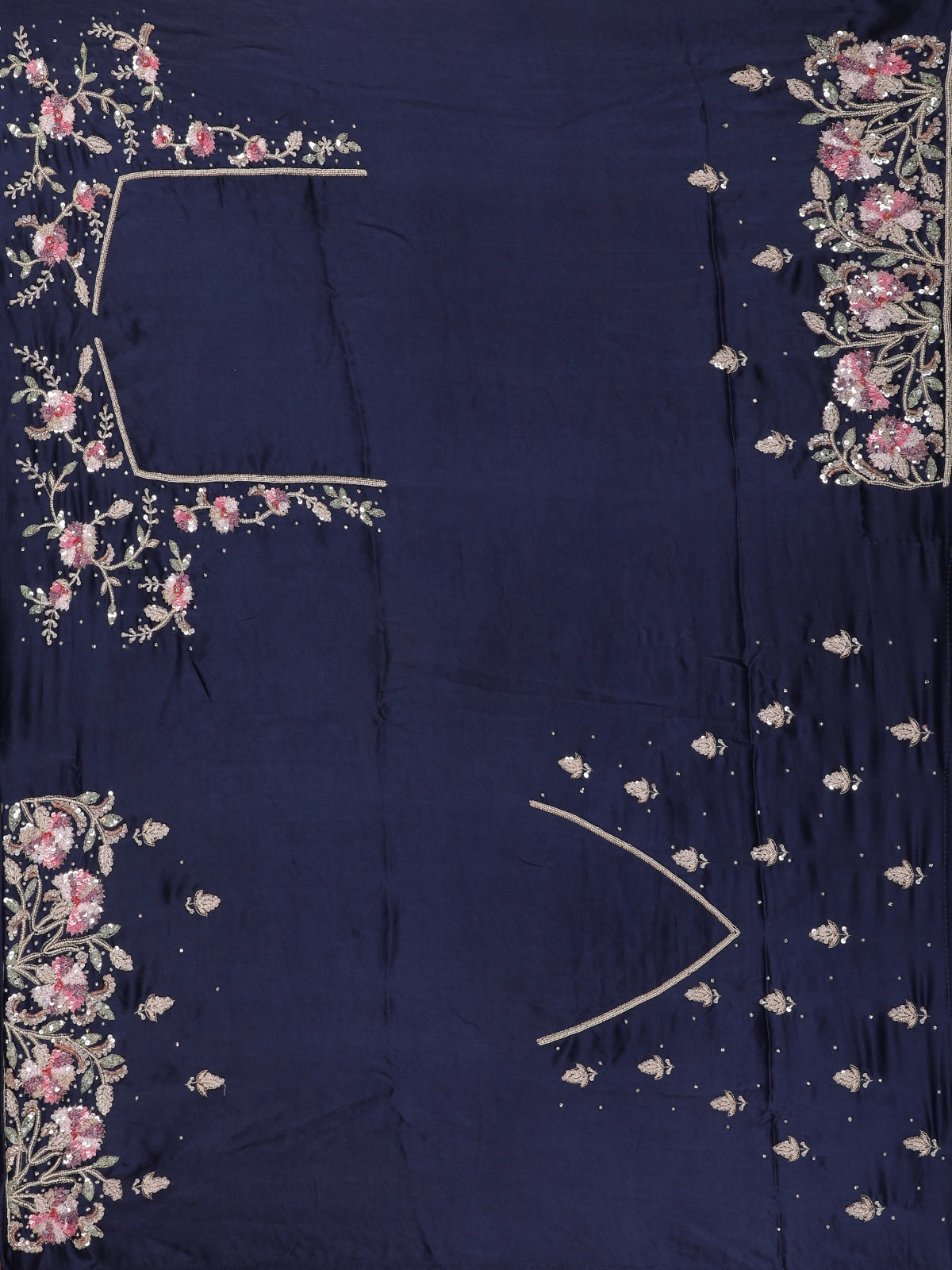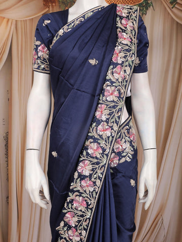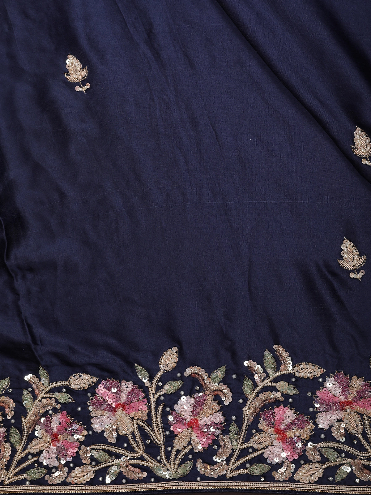 Navy Blue Floral Sequins Embroidered Design Satin Saree