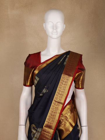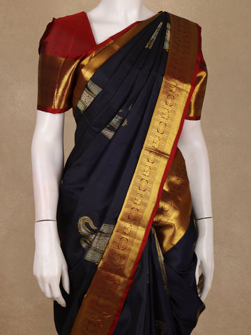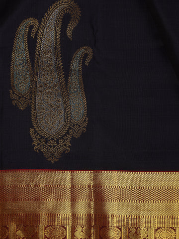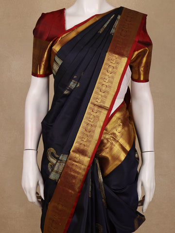 Navy Blue Floral Woven Design Pure Kanchipuram Silk Saree