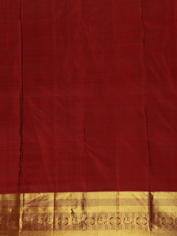 The contrast red blouse and pallu add vibrance and depth, while the pallu’s rich zari weaving showcases exquisite artistry. Crafted from authentic pure Kanchipuram silk, this saree exudes a lustrous sheen, graceful fall, and long-lasting elegance—perfect for traditional wear, weddings, and grand festive occasions.