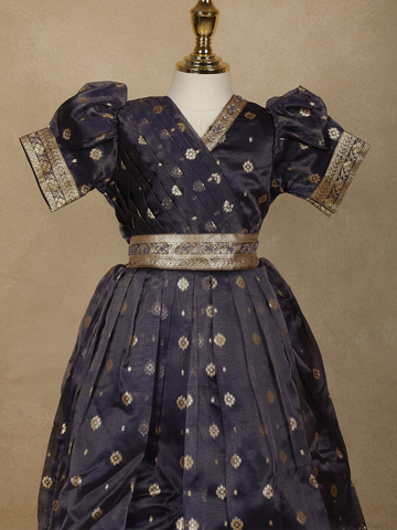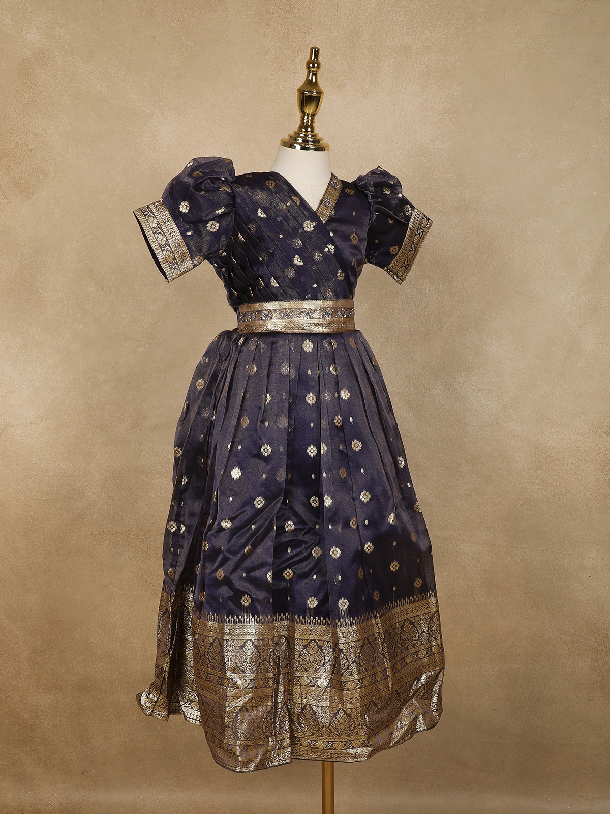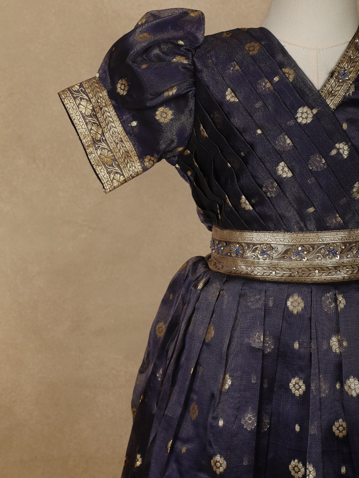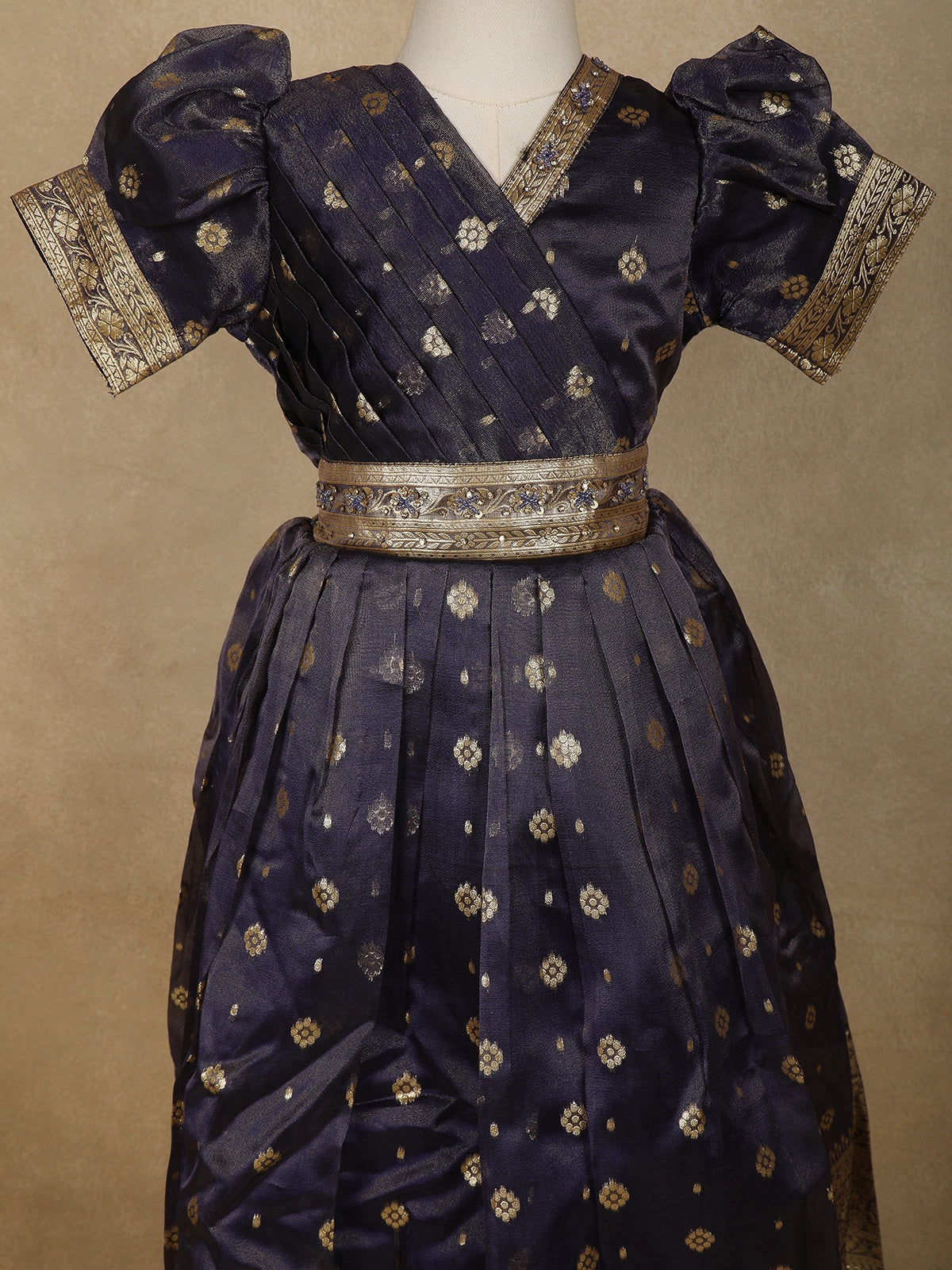Navy Blue Gold Butta Woven Design Banarasi Party Wear Kids Gown