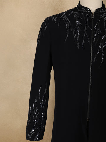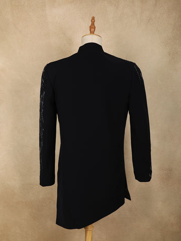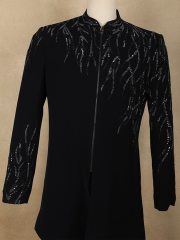 Navy Blue Heavy Sequins and Beads Embroidered Design Polynosic Indo Western Men's Sherwani Set
