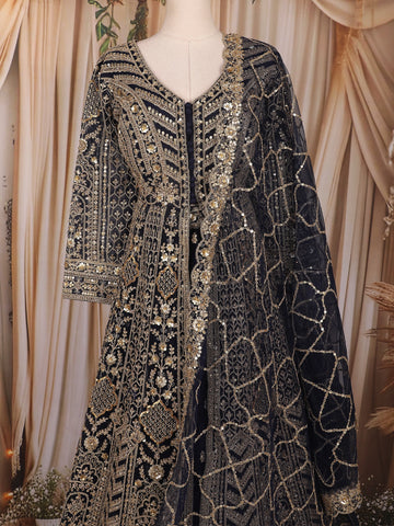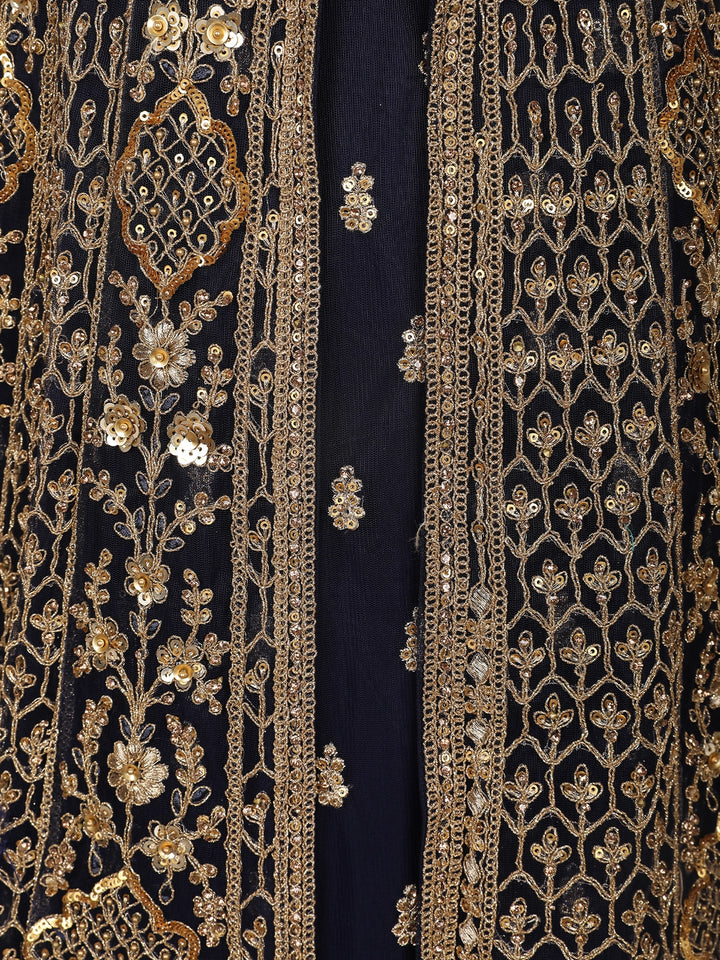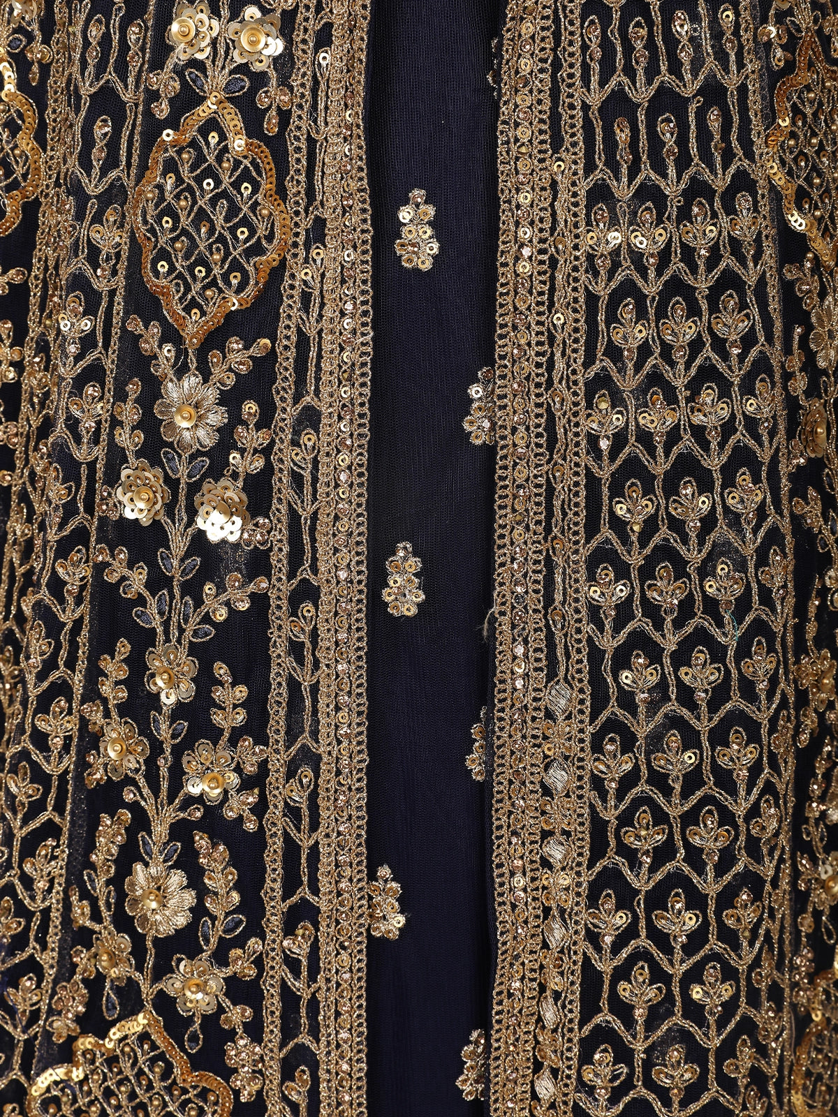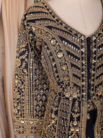 Navy Blue Heavy Sequins Embroidered Design Net Lehenga With Long Jacket