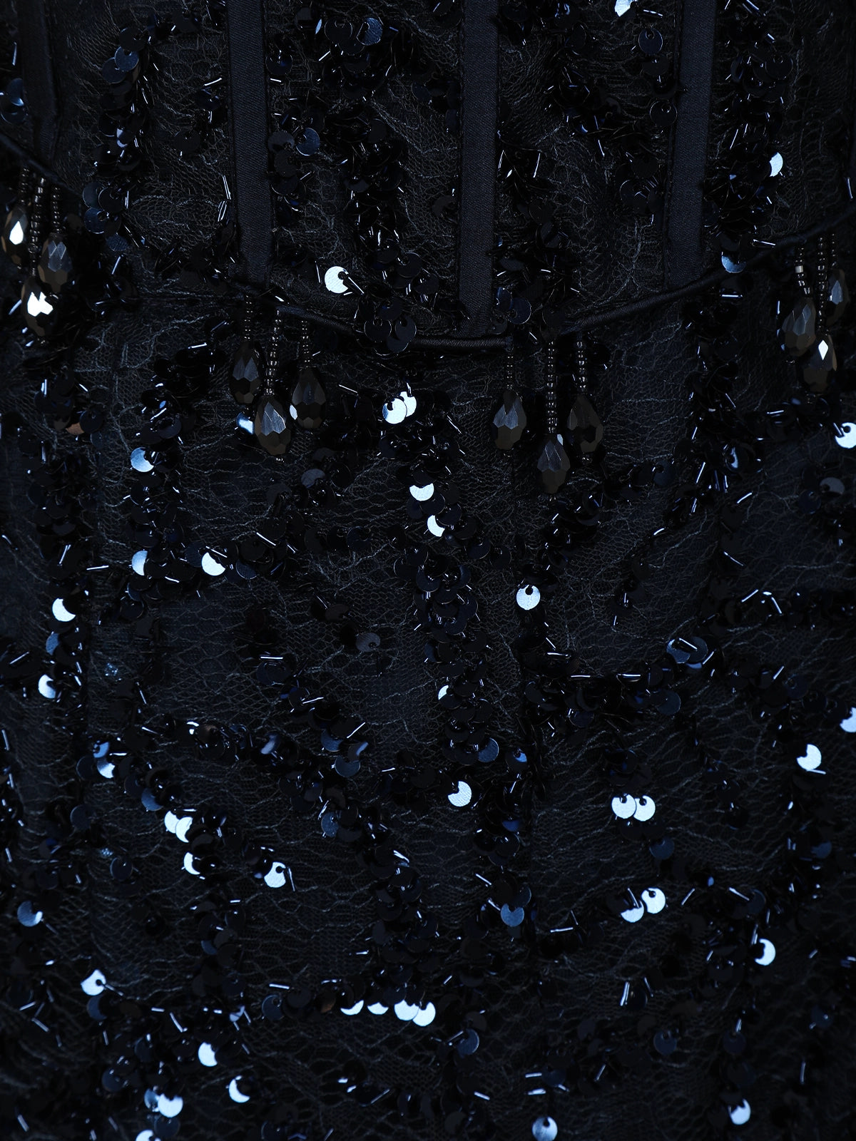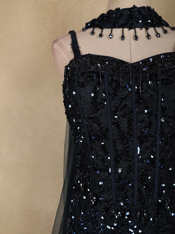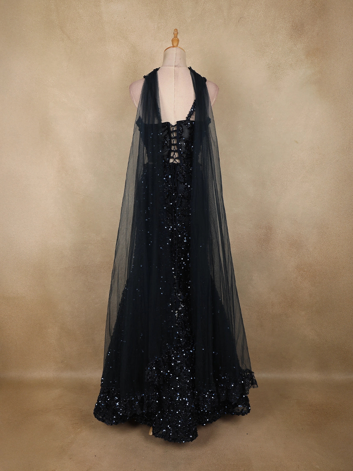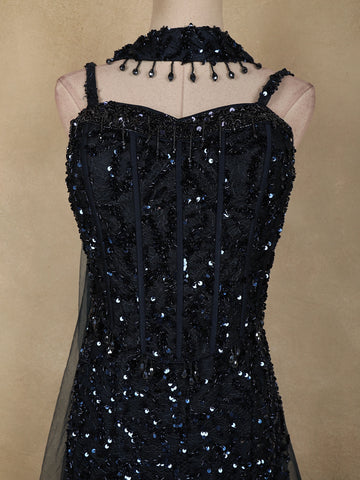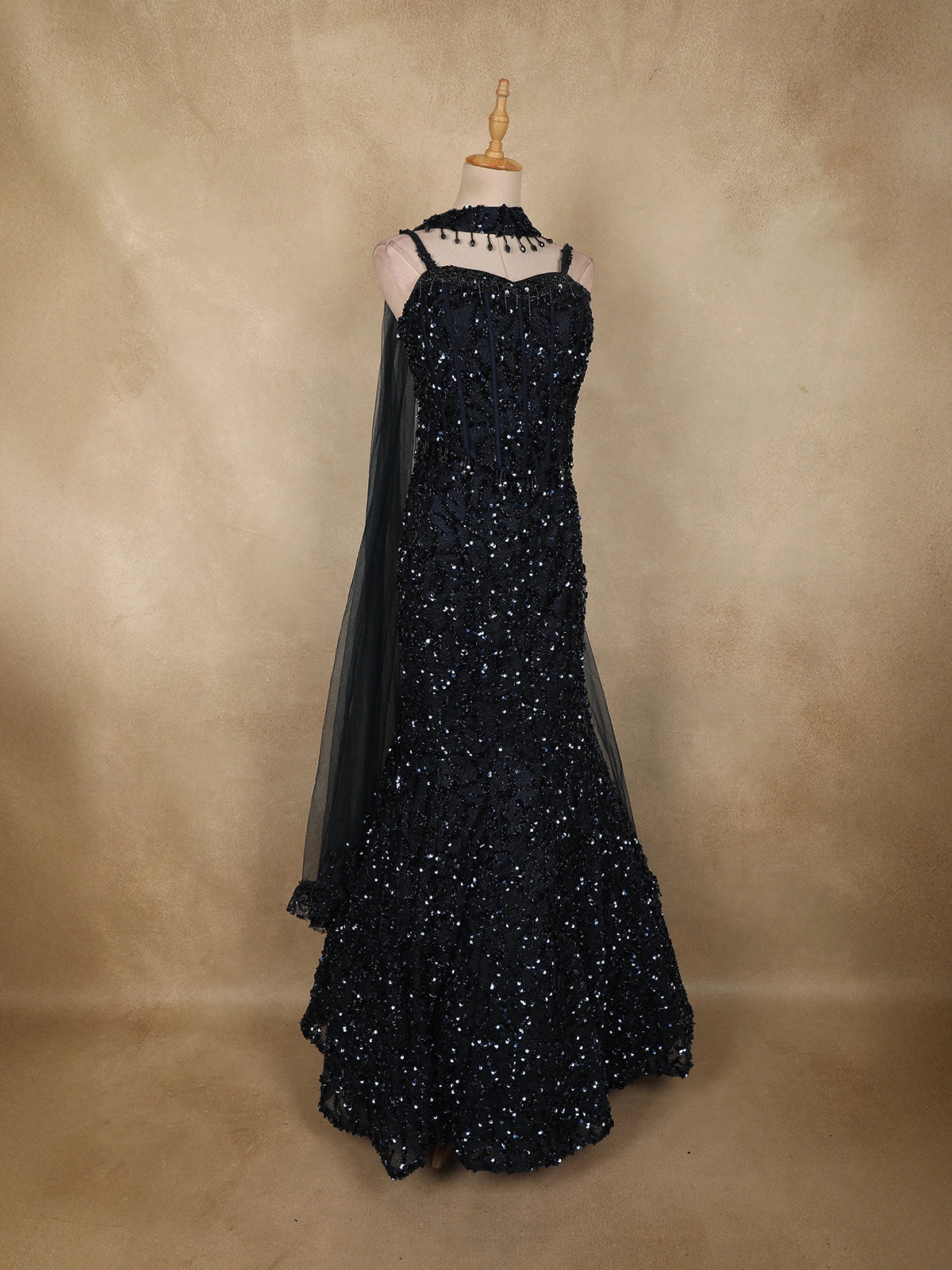 Navy Blue Heavy Sequins Embroidered Design Sequins Mermaid Lehenga with Dupatta