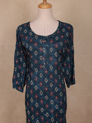 Navy Blue Ikat Printed Cotton Straight Cut Kurti