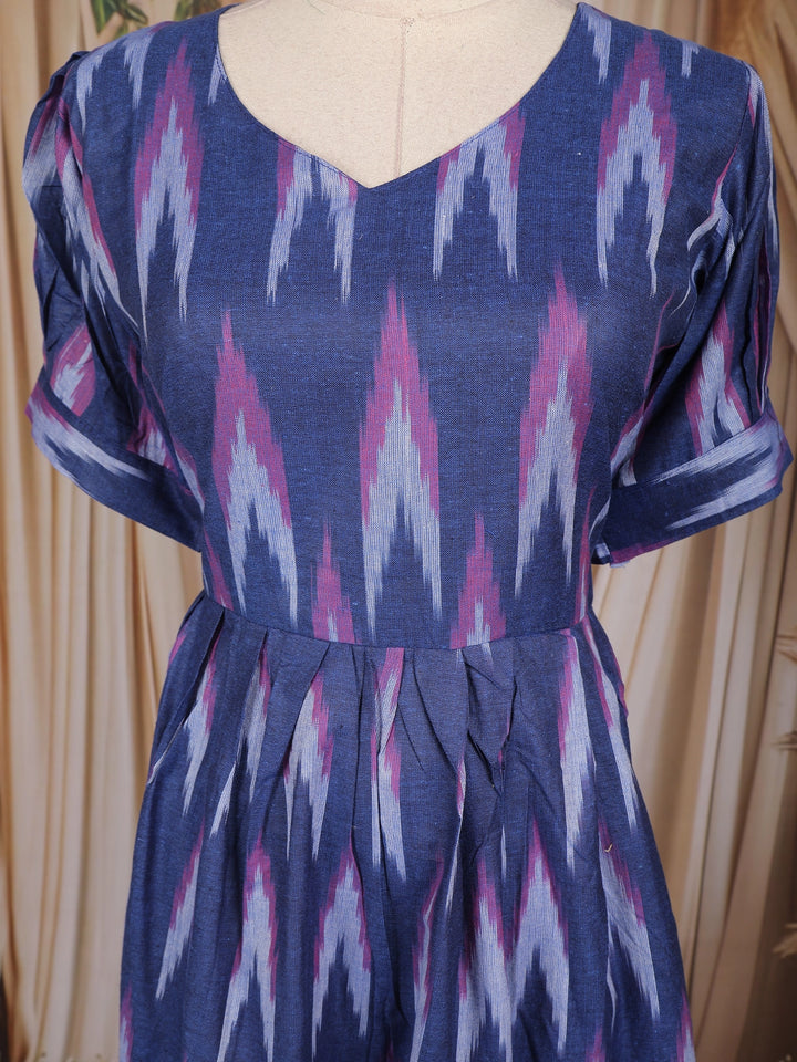 Step into breezy sophistication with this Navy Blue Ikat Printed Cotton Kurti, a perfect fusion of traditional craft and modern minimalism. Made from soft, breathable cotton, this kurti is a summer essential that combines comfort with effortless elegance.