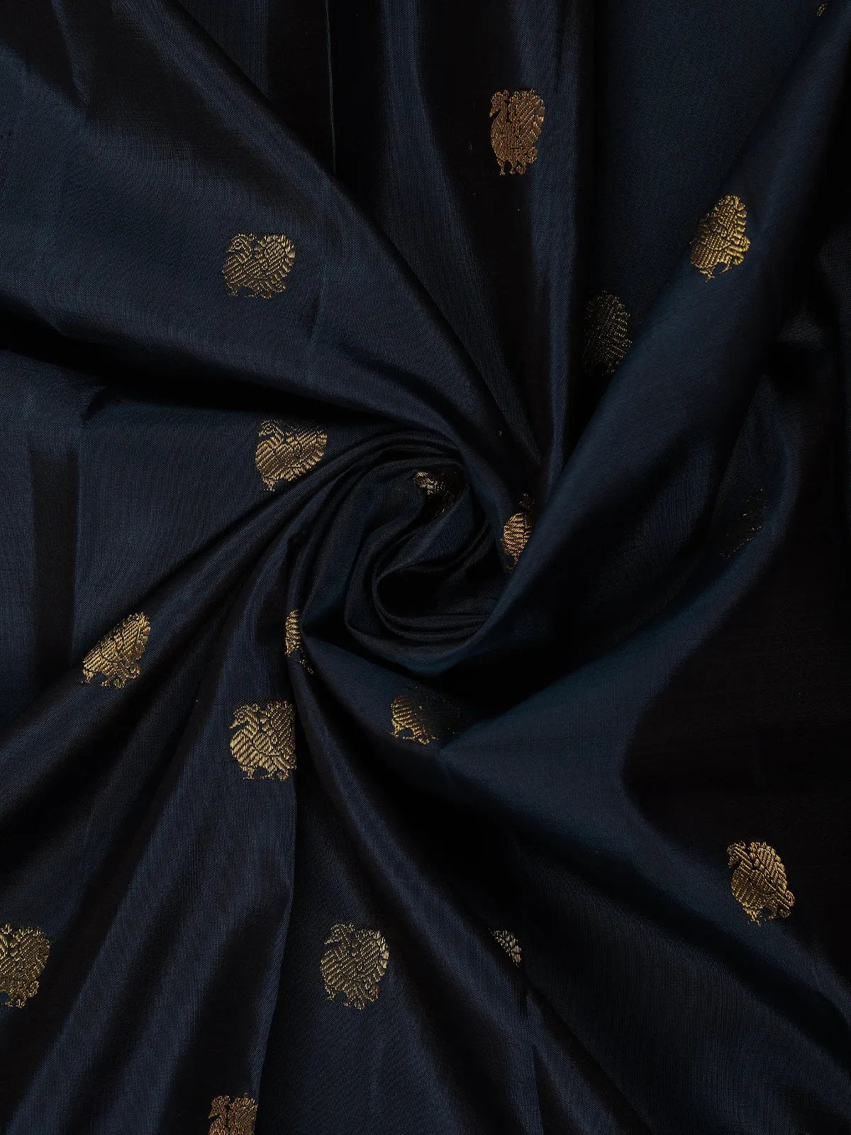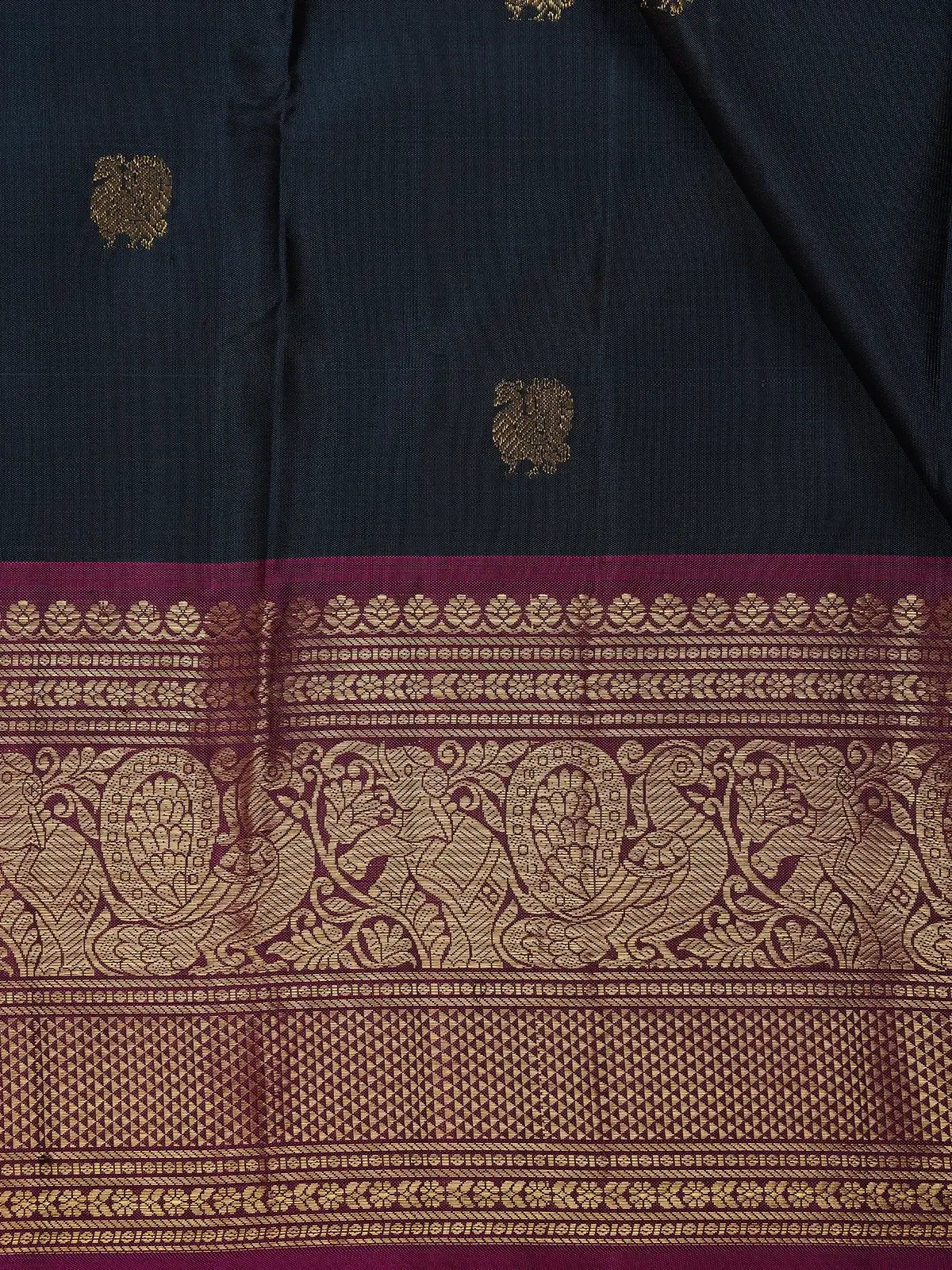 Navy Blue Peacock Woven Pure Kanchipuram Silk Saree With Contrast Border