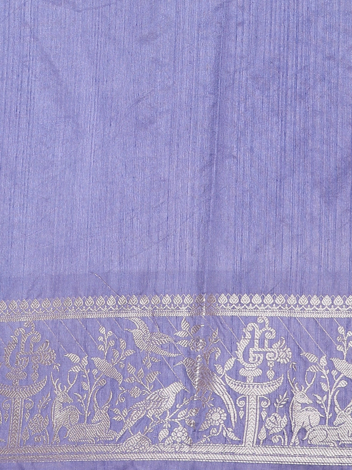 This elegant Navy Blue Raw Silk Saree features beautiful silver zari peacock motifs woven across the body, giving it a regal yet graceful look. The saree is elevated with a stunning Contrast Lavender Zari Border, intricately designed with peacocks, creepers, and floral artistry that adds a rich cultural aesthetic.