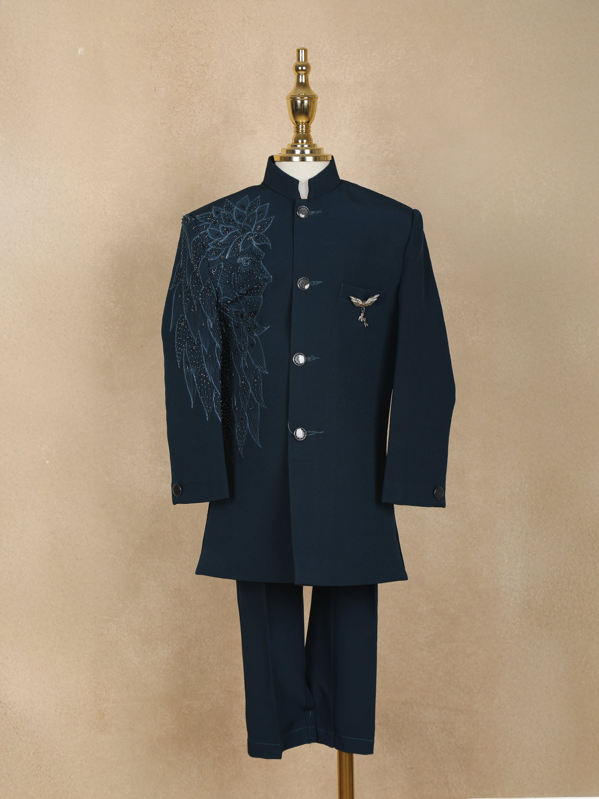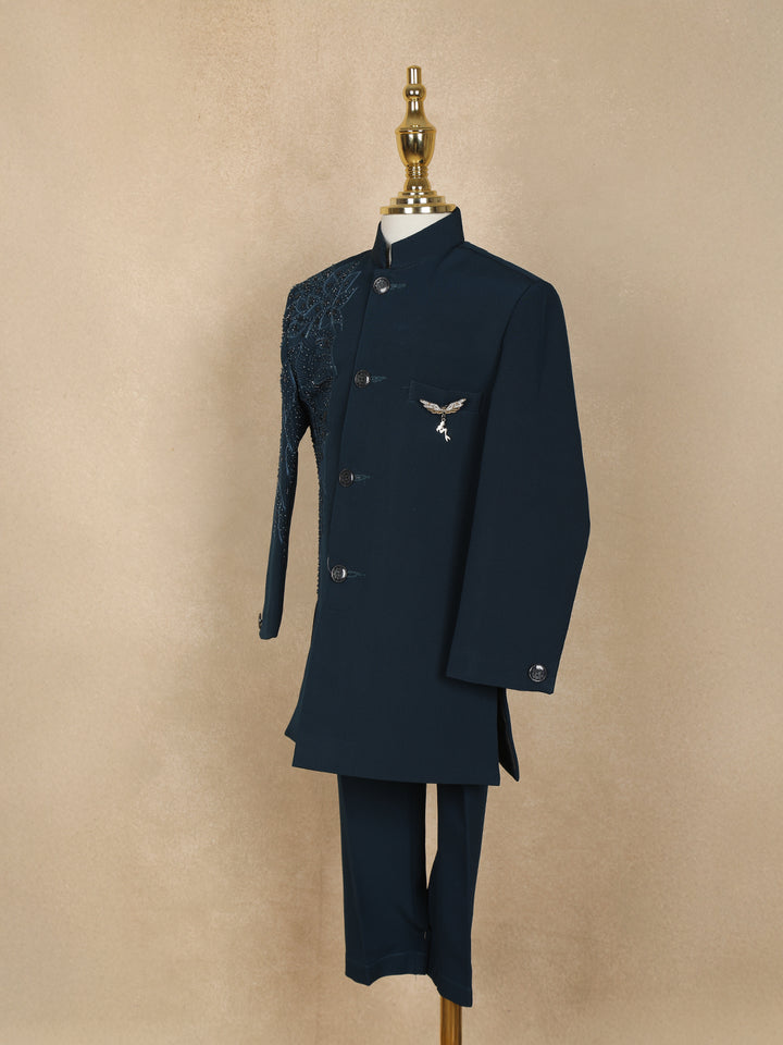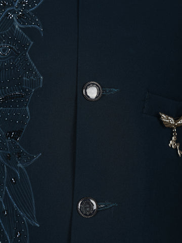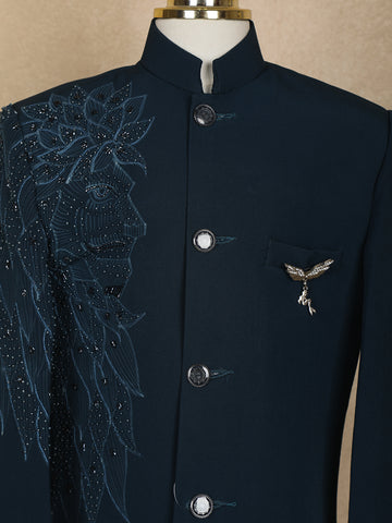 Navy Blue Polyester Lion Sequins Designed Sherwani And Pant Set