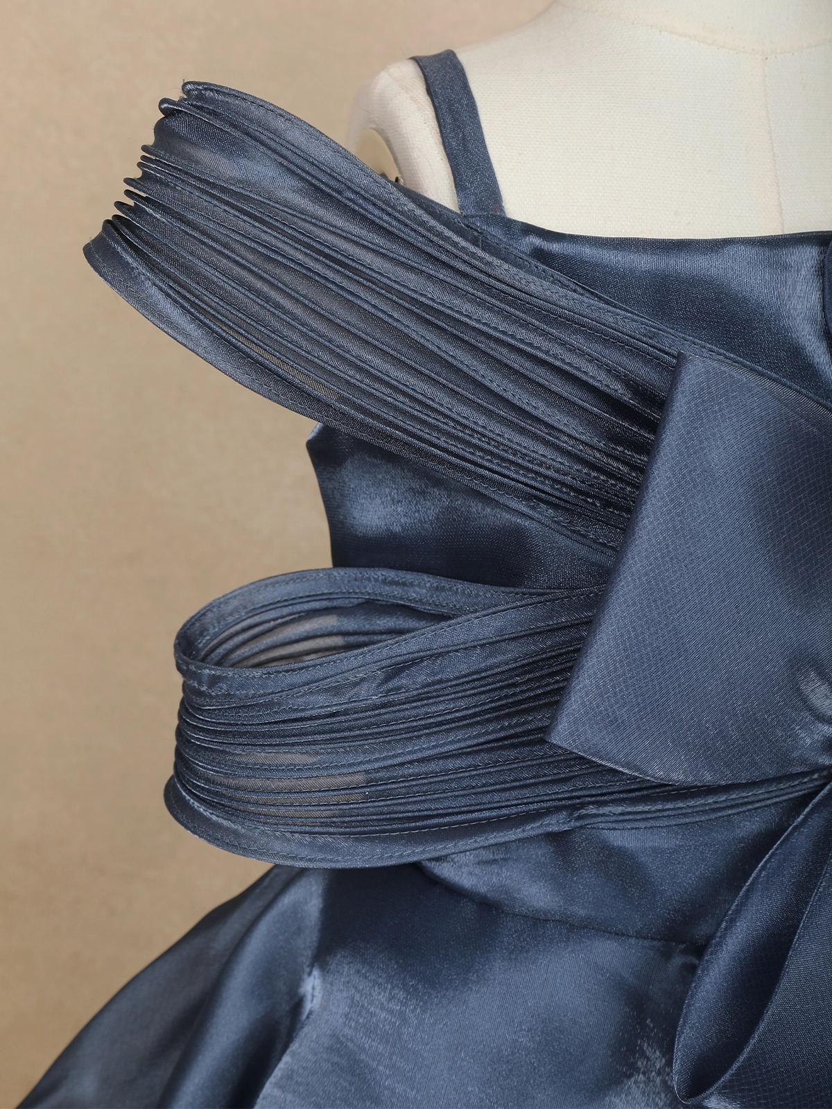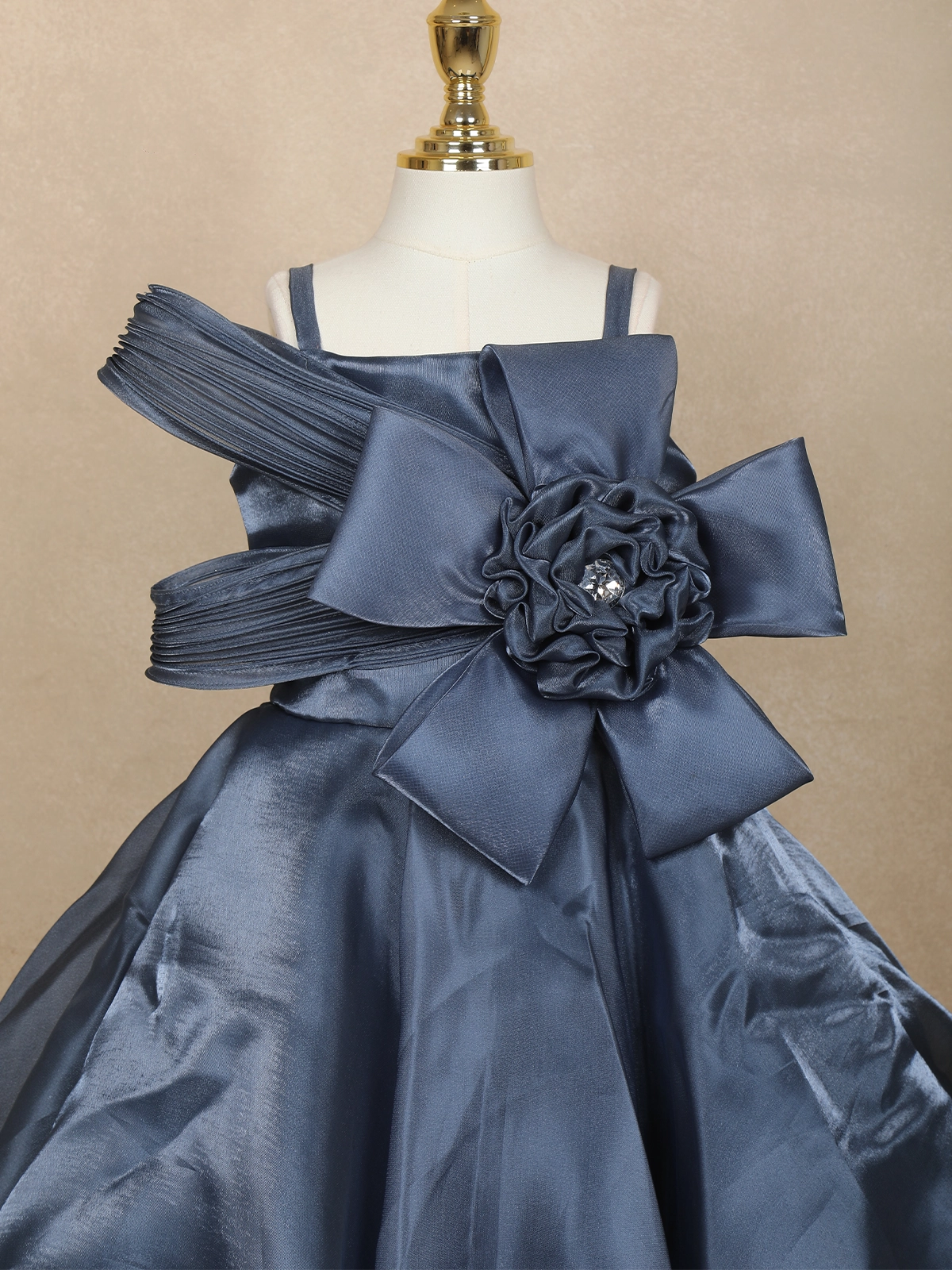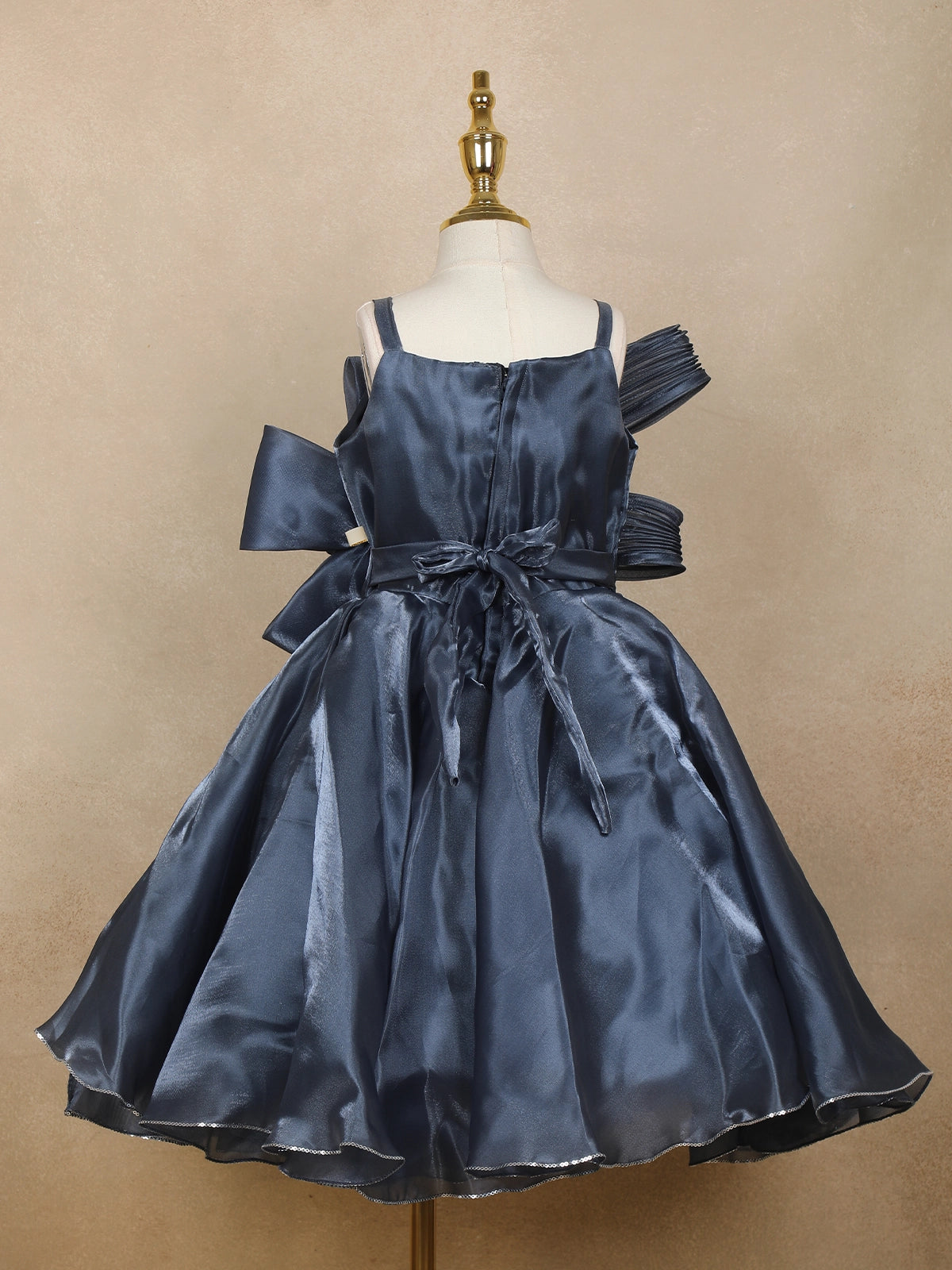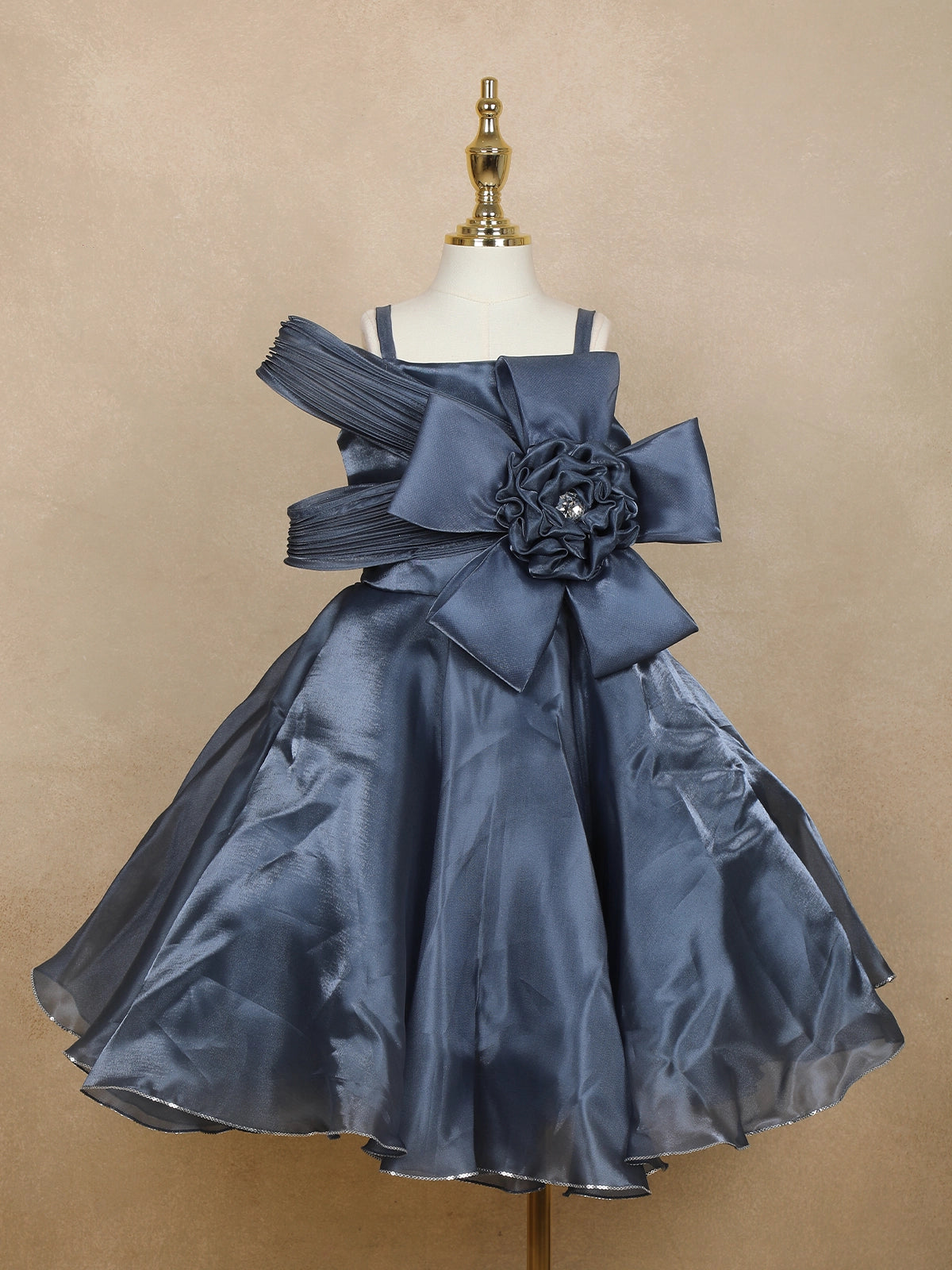 Navy Blue Satin Oversized 3D Flower Party Frock for Girls