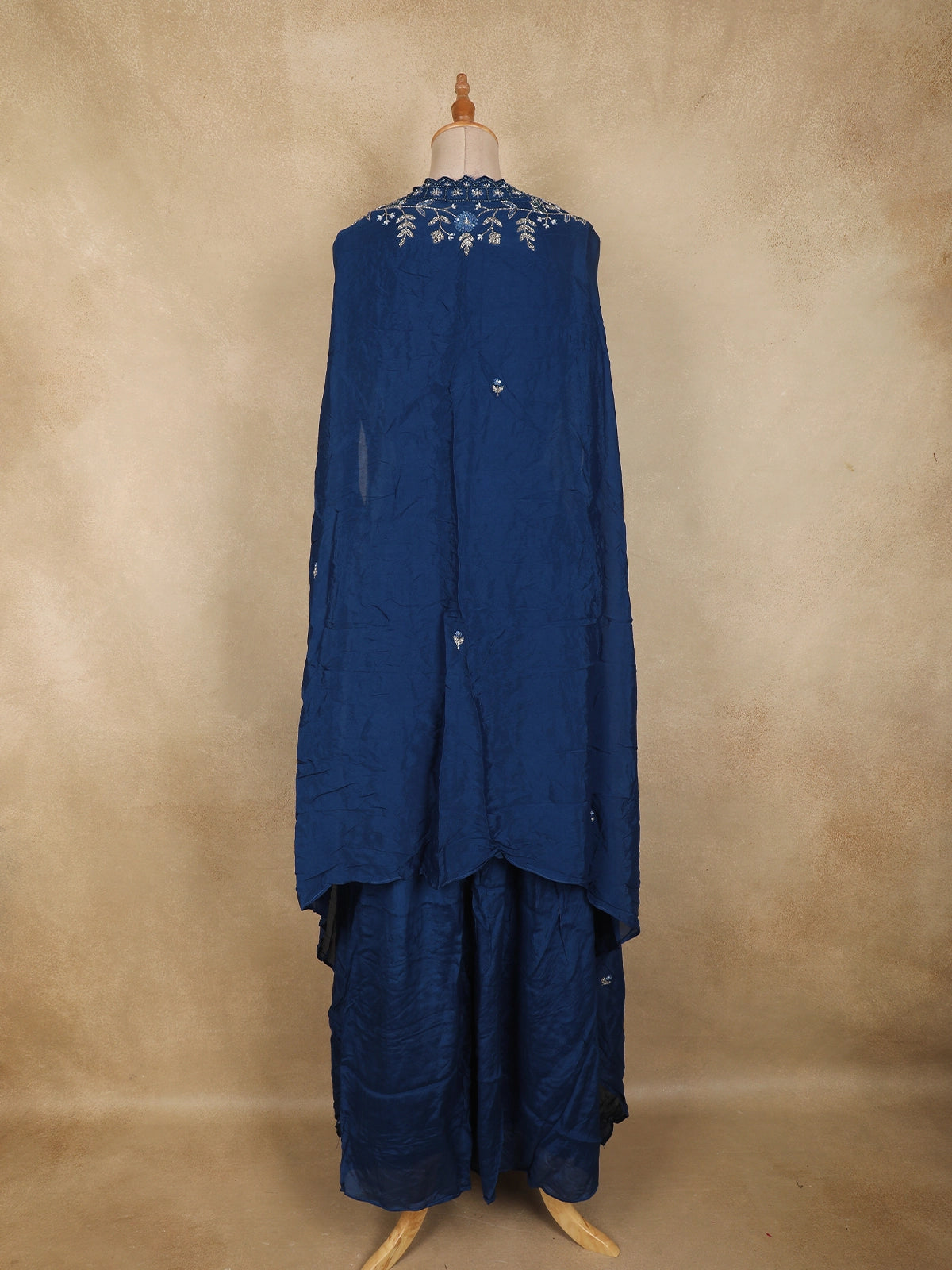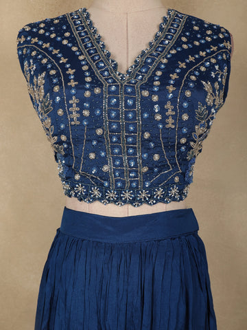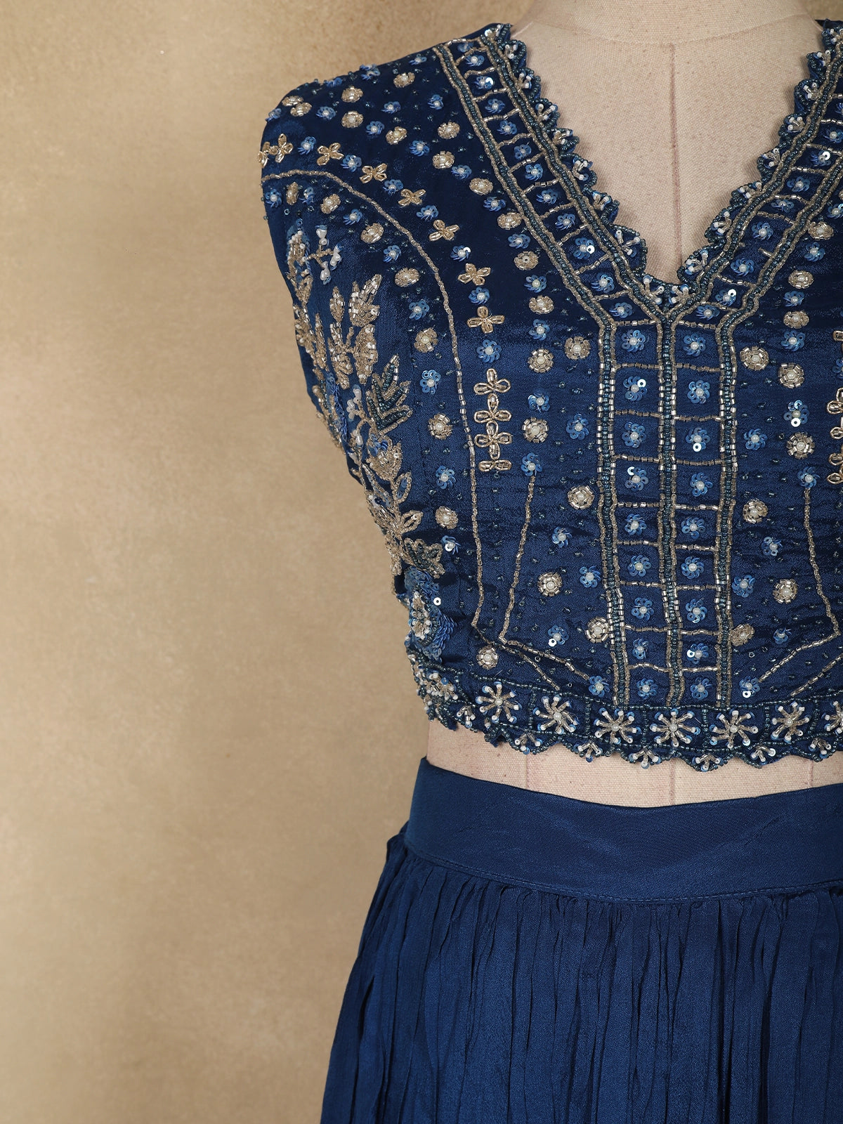 Navy Blue Sequins and Beads Embroidered Design Georgette Indo-Western Skirt Top