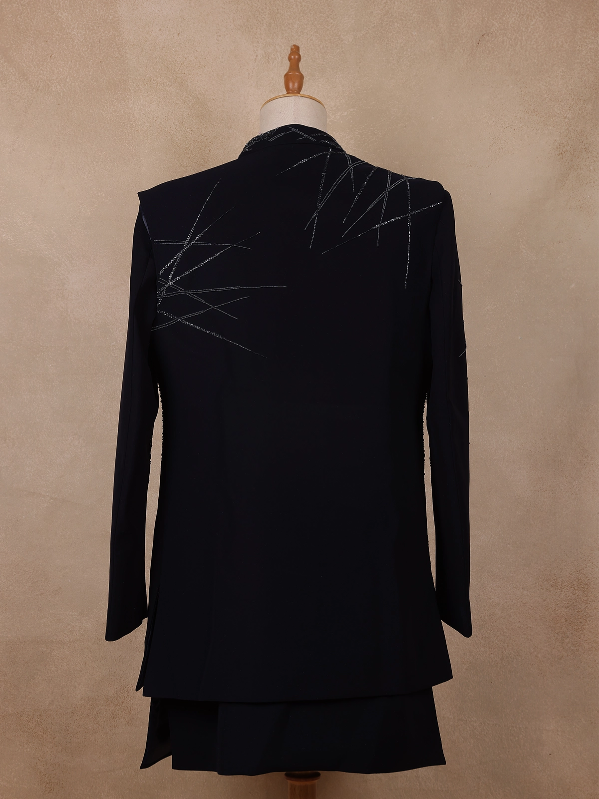 Perfect for evening receptions, cocktail functions, or festive ceremonies, this ensemble embodies modern royalty and understated glamour in every thread.
