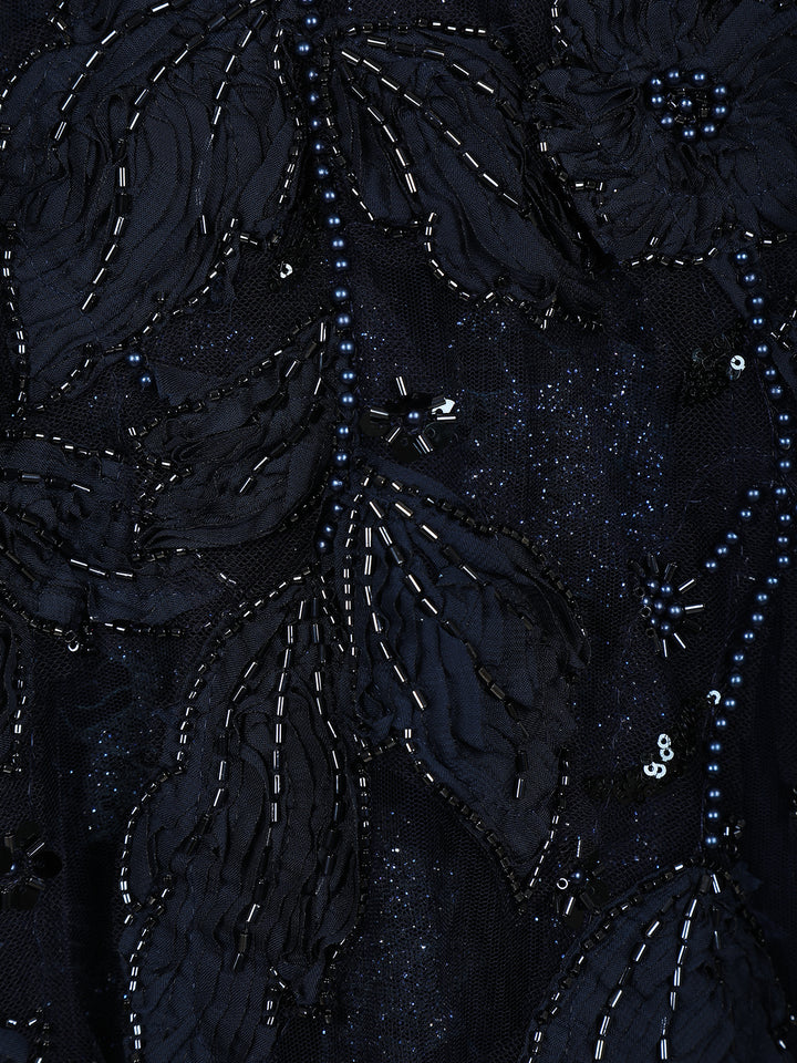 Whether it’s a reception night, cocktail party, or evening celebration, this gown ensures you stand out with poise and sophistication. Light-catching details paired with a deep navy shade make it a timeless choice for those who love luxurious fashion with a modern twist.