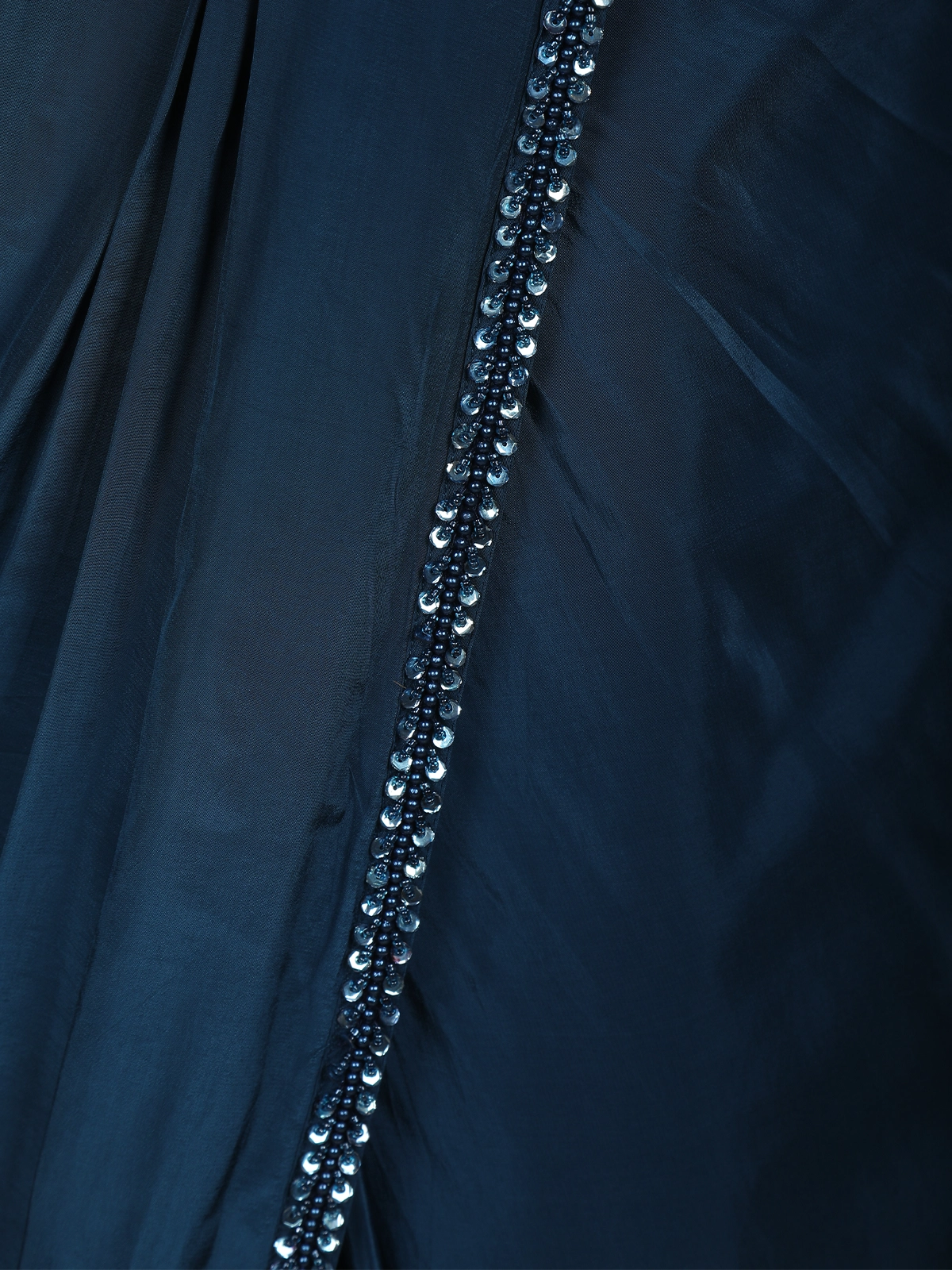 Navy Blue Sequins Embroidered Satin Ready To Wear Saree