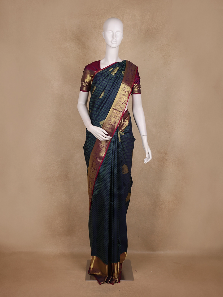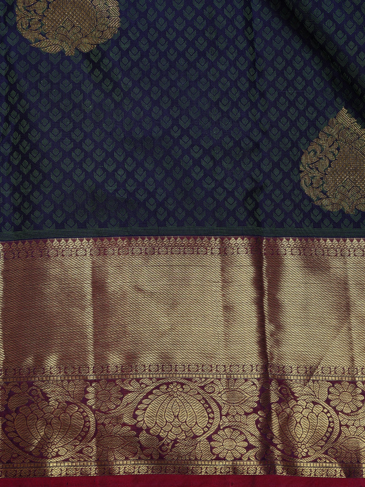 Navy Blue Small Butta Woven Kanchipuram Silk Saree