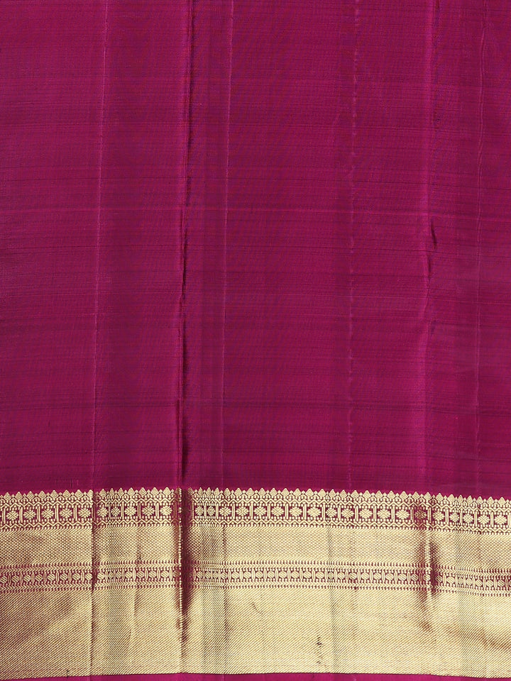 Woven from pure Kanchipuram silk, this saree offers a luxurious sheen and fluid drape, paired with a contrast pink blouse piece enhanced with zari detailing—an ensemble that reflects sophistication and heritage in every fold.