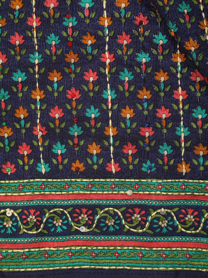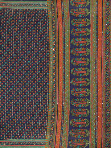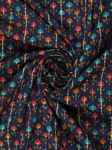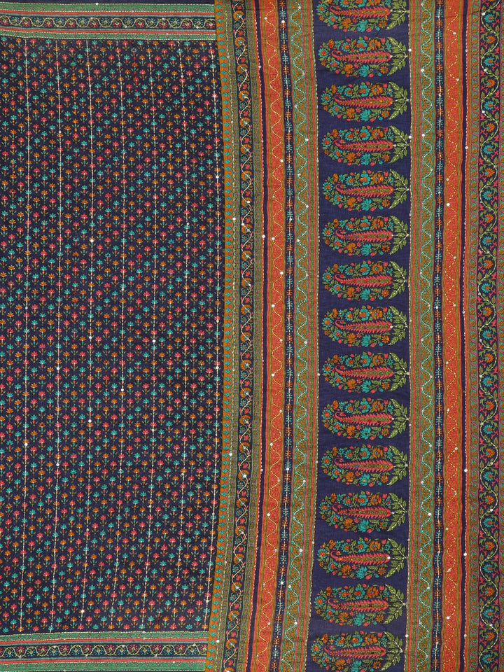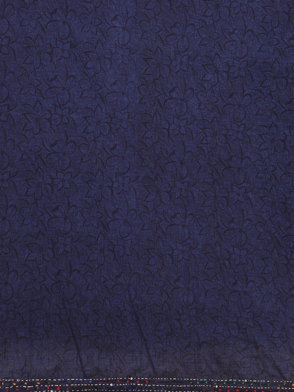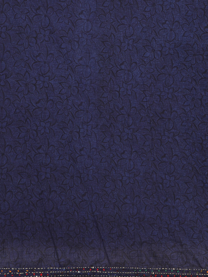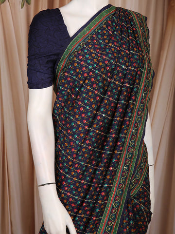 Navy Blue with Multicolor Floral Printed Design Chanderi Cotton Saree