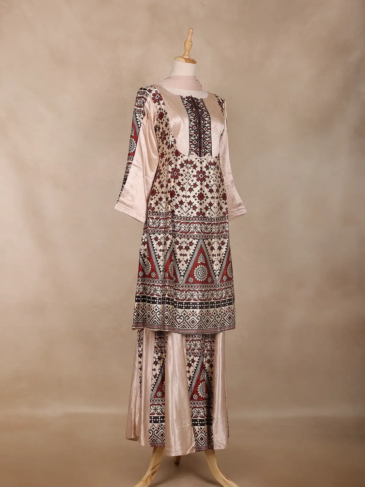 Nude Beige Geometric Design Cotton Palazzo Suit