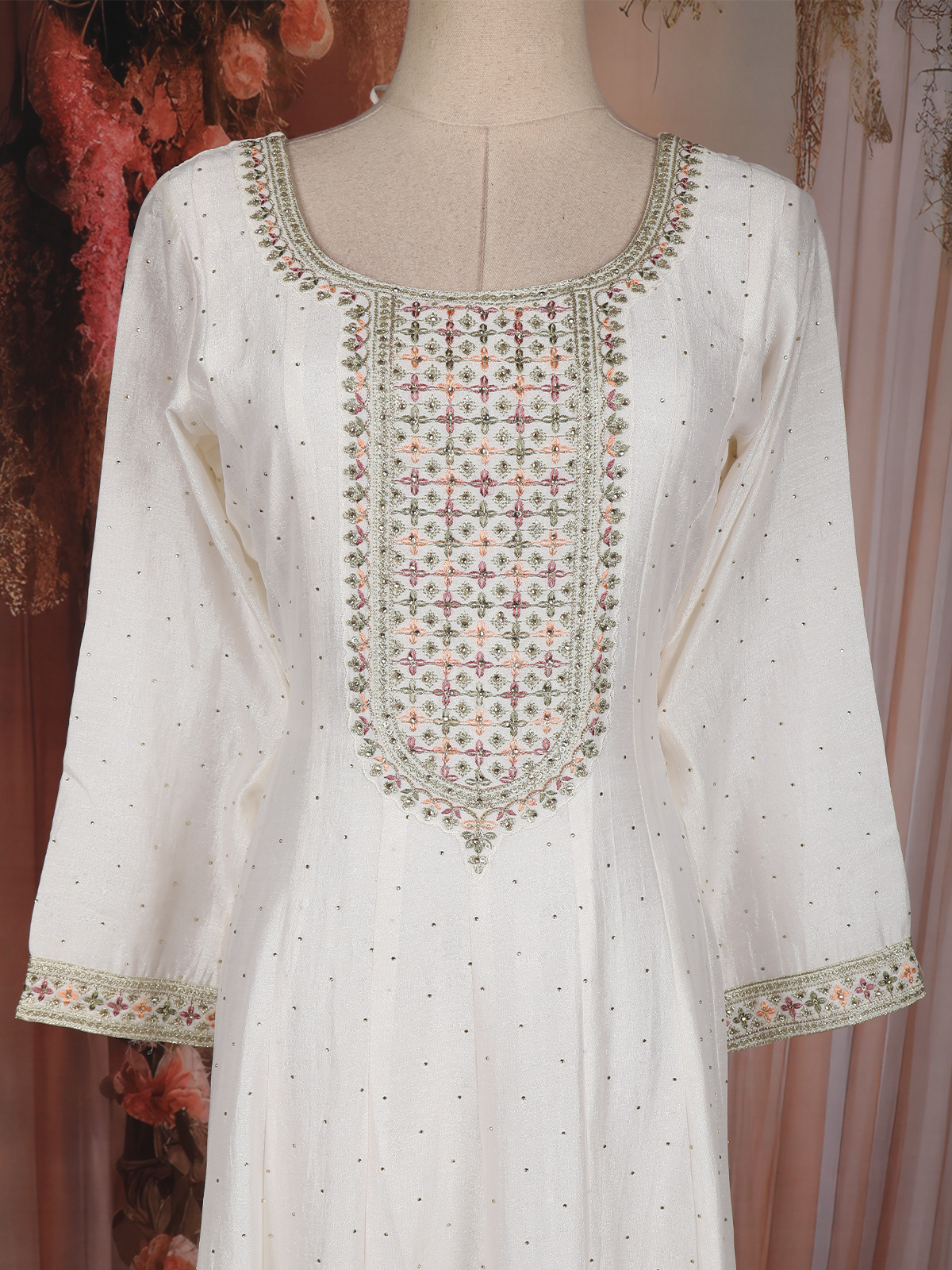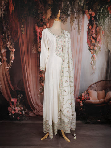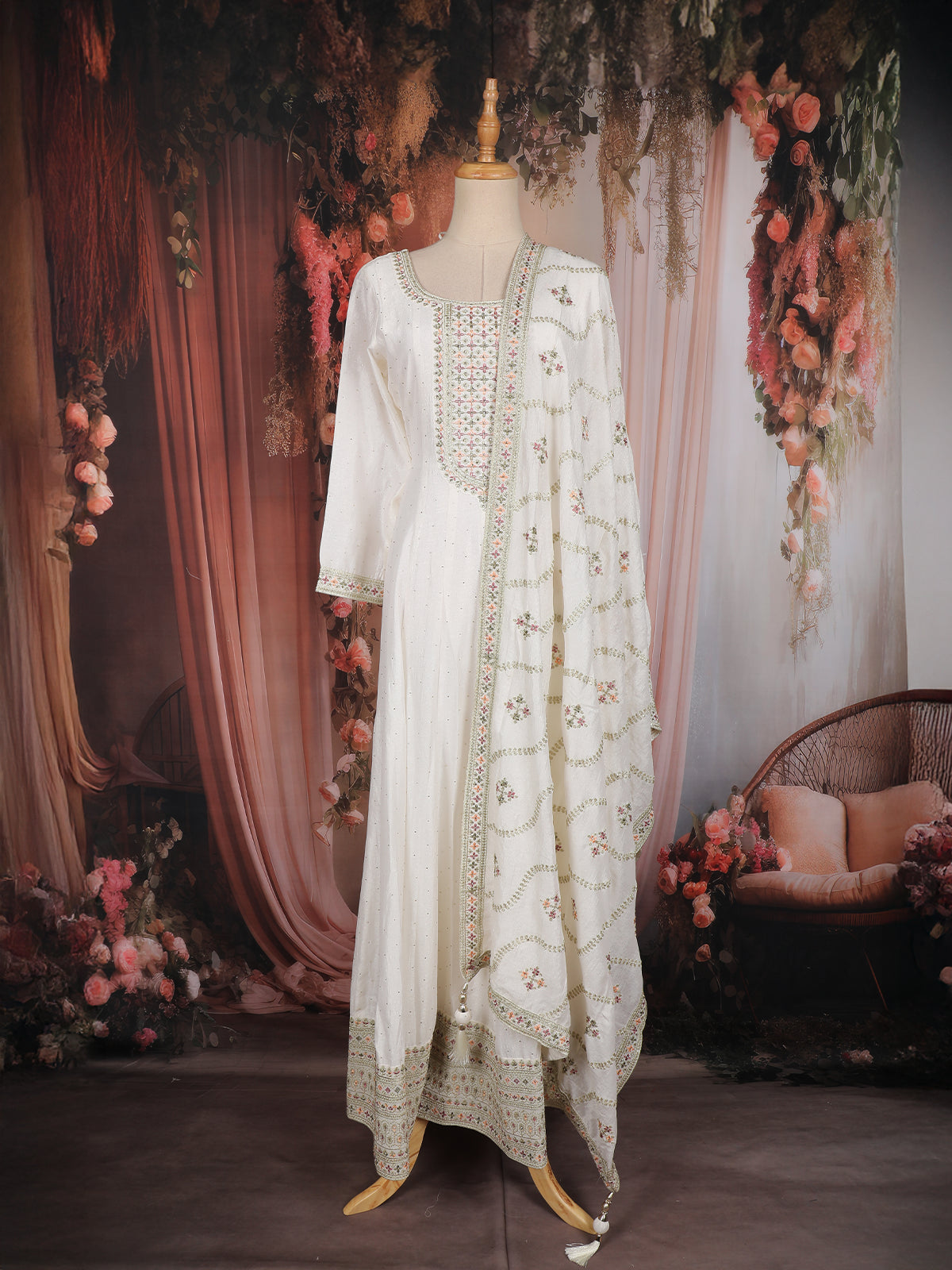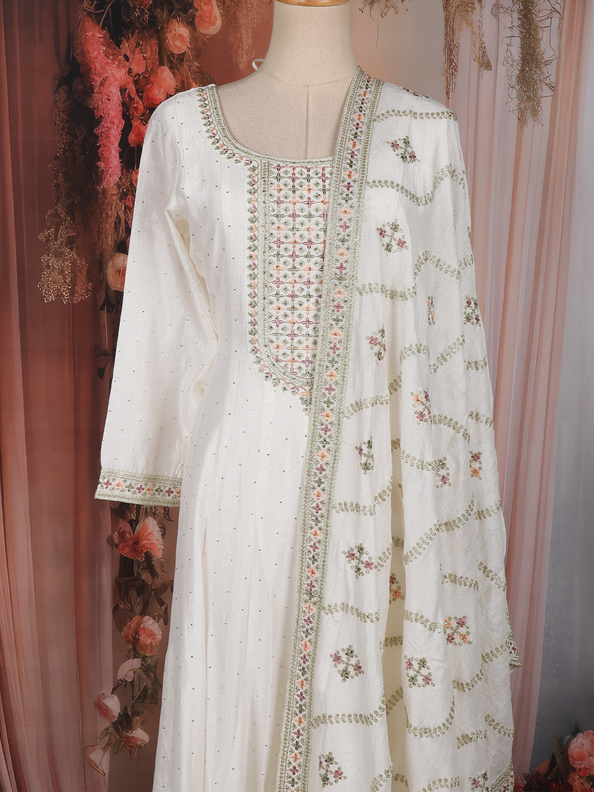 Off White Floral Embroidered Design Georgette Gown with Dupatta